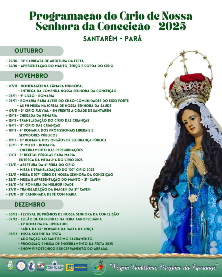 Saiba tudo aqui TV Nazaré Rádio Nazaré Voz Nazaré online família nazaré Destaques do Portal Nazaré #Comise Seminaristas do RN2 participam de formação 16 de outubro de 2025 #CírioDasCrianças 33ª Romaria das Crianças no domingo, 19 16 de outubro de 2025 #CírioMusical Ministério Seráfico hoje no Círio Musical 16 de outubro de 2025 #DioceseMacapa Pastoral dos Shoppings em Macapá 16 de outubro de 2025 #MissaPregadoresCirio Dom João Muniz celebrou missa no Círio 16 de outubro de 2025 #CirioSantarem Programação do Círio 2025 em Santarém 16 de outubro de 2025 Ver mais Notícias artigos Semanais #ArtigoDomJulio Amazônia Querida #ArtigoPeHelioFronczak Em Belém do Pará, é círio outra vez! #ArtigoPeRomeuFerreira Homilia Dominical – Lc 18,1-8. #ArtigoPeAntonioMattiuz 12 – SIM OU NÃO: EU DEVO ESCOLHER #ArtigoPeRomeuFerreira HOMILIA DOMINICAL – JO 2, 1-11 Destaques da REDE NAZARÉ | FAMÍLIA NAZARÉ #Cirio2025 Banco da Amazônia promove jantar em apoio ao Círio 9 de outubro de 2025 16:30 #Cirio2025 Missa de envio de comunicadores e casais coleteiros para o Círio 7 de outubro de 2025 16:15 #RedeNazare Círio: espiritualidade prepara missão da Rede Nazaré 6 de outubro de 2025 12:51 #ArquidiocesedeBelem Empreendedores recebidos na Arquidiocese de Belém 1 de outubro de 2025 16:10 mais notícias da Família Nazaré DESTAQUES DA TV Nazaré Ver Canais da TV notícias do Círio de Nazaré #CírioDasCrianças 33ª Romaria das Crianças no domingo, 19 16 de outubro de 2025 10:49 #CírioMusical Ministério Seráfico hoje no Círio Musical 16 de outubro de 2025 10:44 #MissaPregadoresCirio Dom João Muniz celebrou missa no Círio 16 de outubro de 2025 09:52 #CirioSantarem Programação do Círio 2025 em Santarém 16 de outubro de 2025 09:47 #CirioMaraba Círio de Nazaré em Marabá 16 de outubro de 2025 09:45 #CírioMusical Dunga anima noite de Círio Musical 15 de outubro de 2025 10:42 Ver mais Notícias do Círio