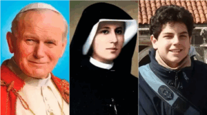 São João Paulo II, santa Faustina Kowalska e beato Carlo Acutis | Domínio Público Esses santos contemporâneos se caracterizaram