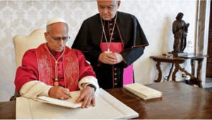 Papa Leão XIV assinando a sua primeira exortação apostólica: Dilexit te, sobre o amor aos pobres. | | Vatican Media.