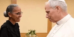Marina encontrou o Papa em Roma, nesta quarta-feira, 1º (Foto: reprodução | Vatican News) Leão XIV presidiu nesta quarta-feira