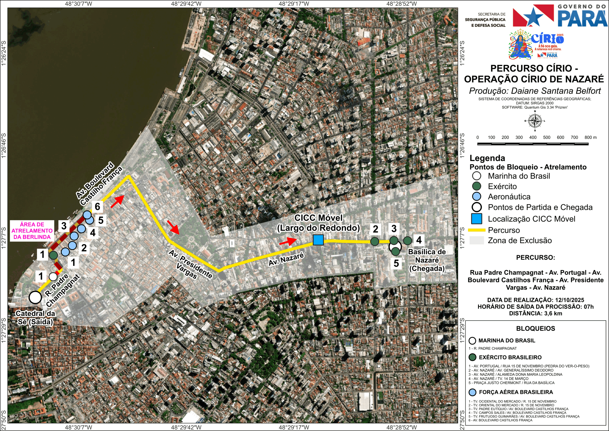 O percurso atravessa o Centro Histórico de Belém e passa por alguns dos principais monumentos representativos da cidade, como o Ver-o-Peso, a Estação das Docas e a Praça da República. São aproximadamente seis horas de procissão, percorrendo 3,6 km, com mais de dois milhões de pessoas previstas em oração, devoção e agradecimento. A expectativa deste ano é superar os 2,3 milhões de devotos presentes em 2024.