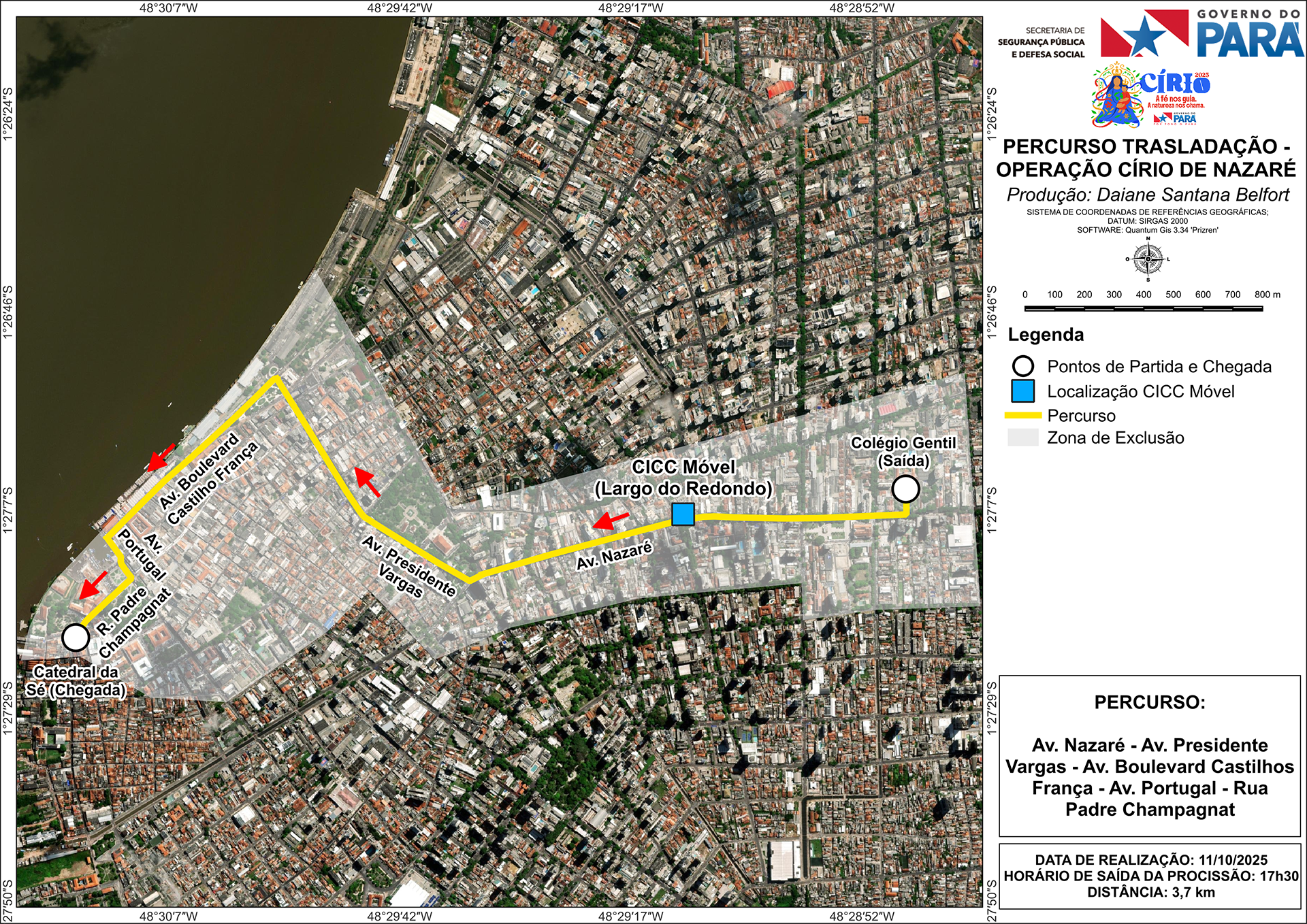 O trajeto passará pelas avenidas Nazaré, Presidente Vargas, Portugal, Boulevard Castilho França, rua Padre Champagnat, finalizando na Catedral de Belém.