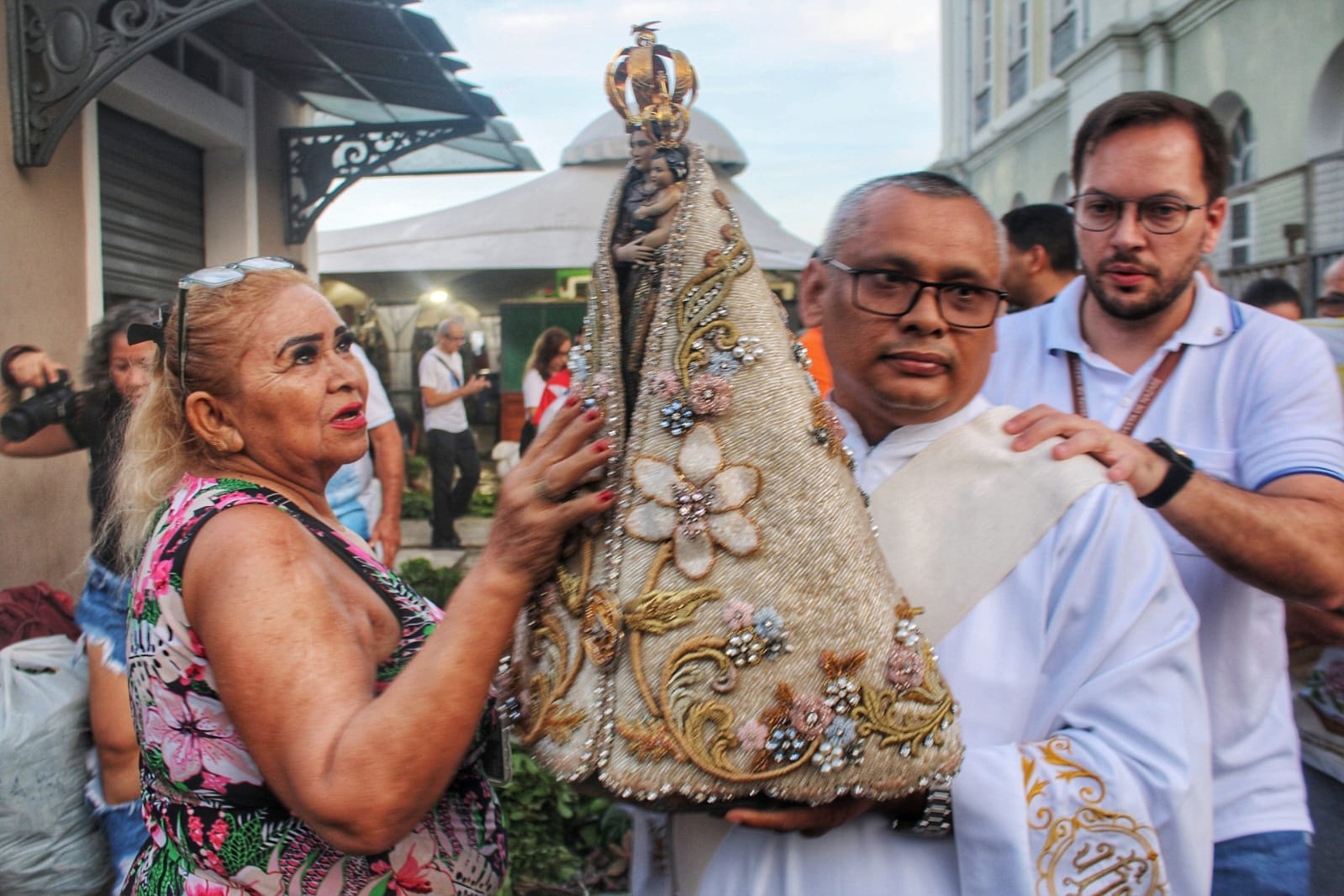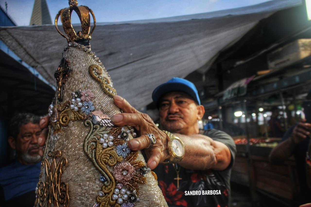 Feirantes e frequentadores do Complexo Ver-o-Peso se emocionaram ao receberem a Imagem Peregrina de Nossa Senhora de Nazaré na quinta-feira, 9, dentro da programação do 233ºCírio de Nazaré.
