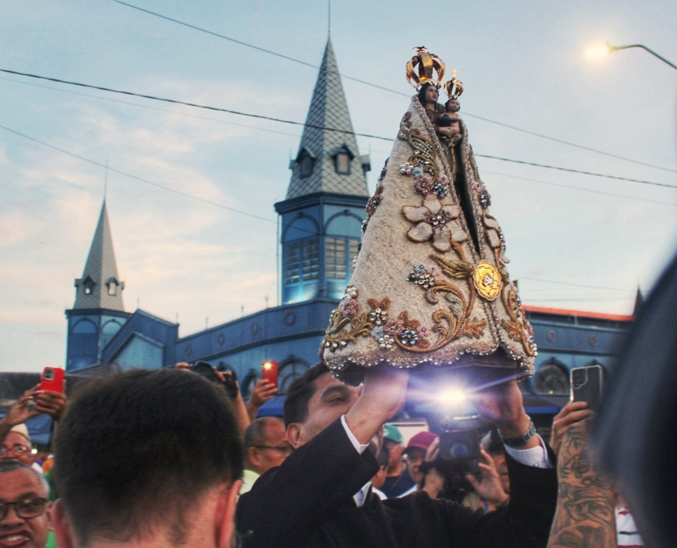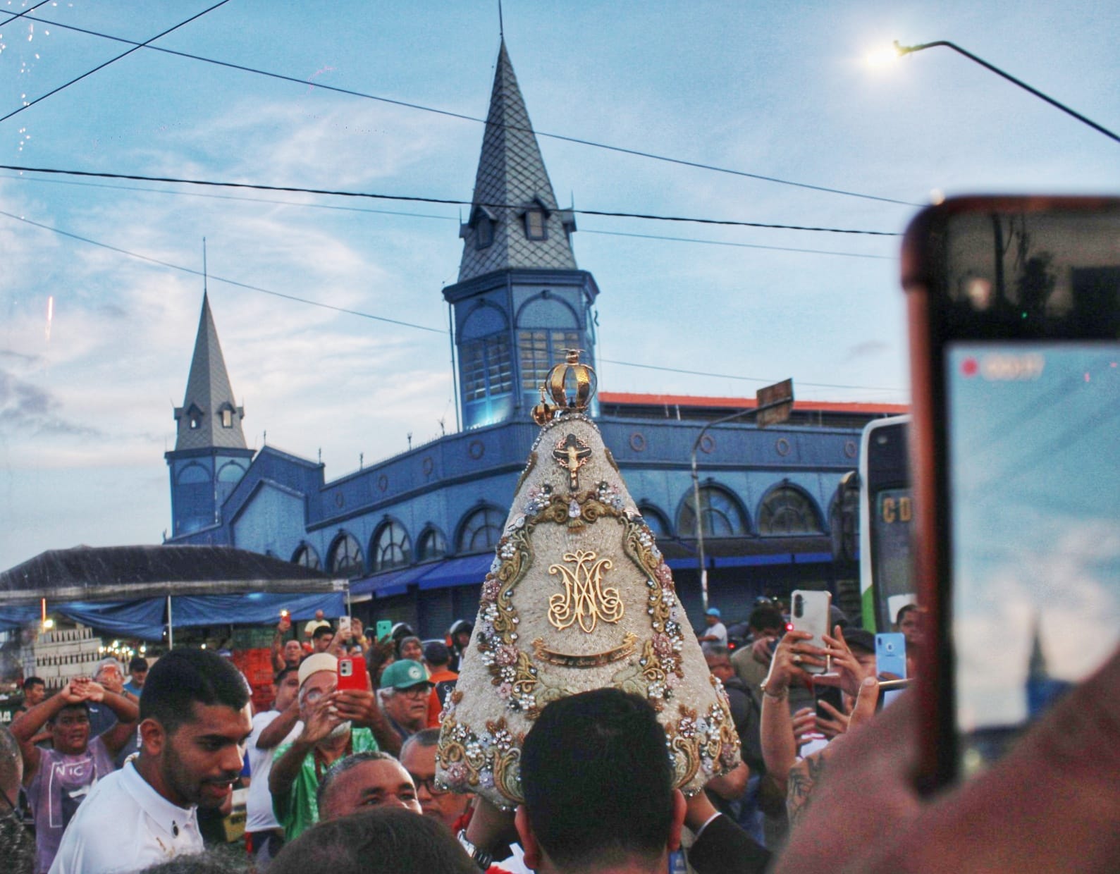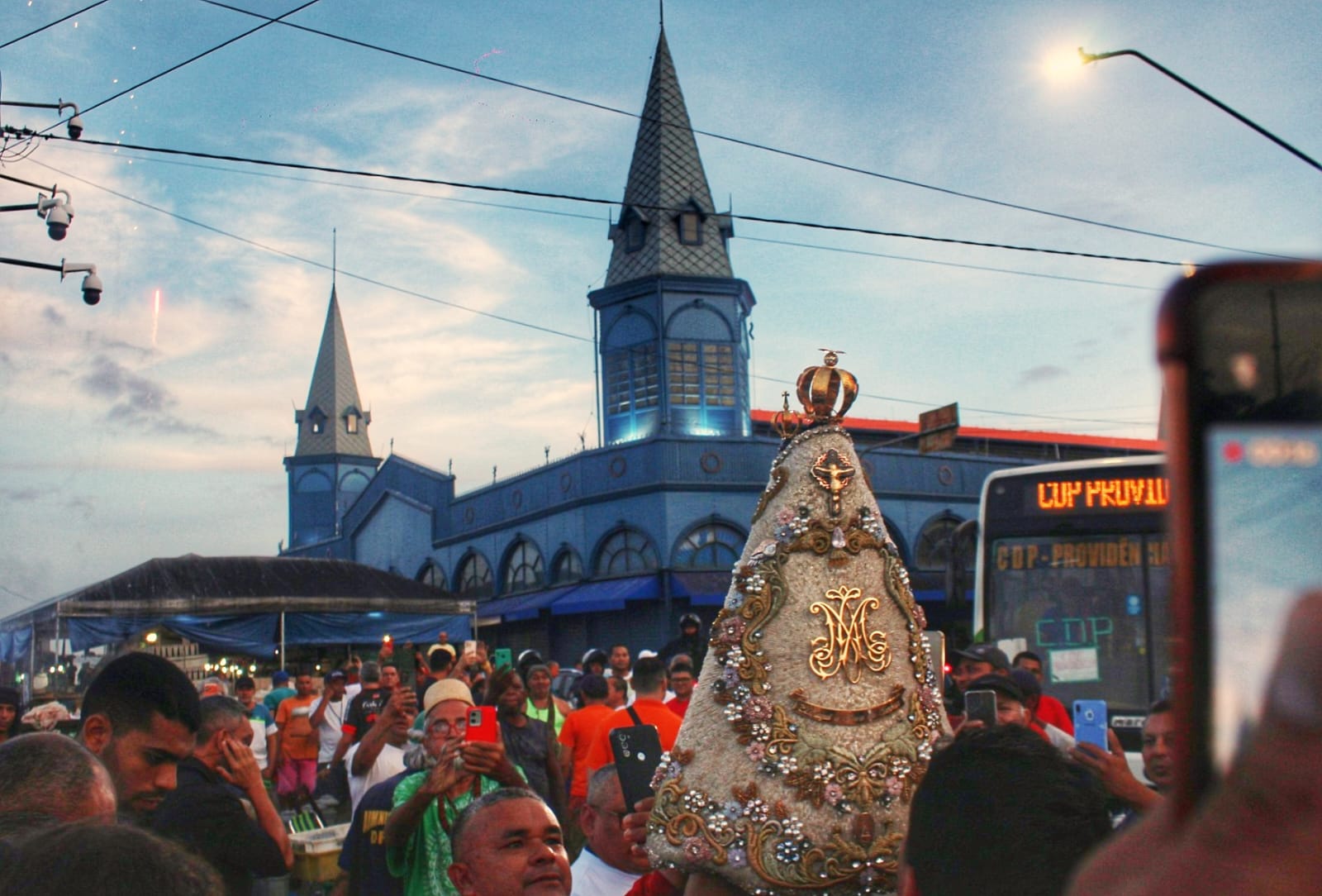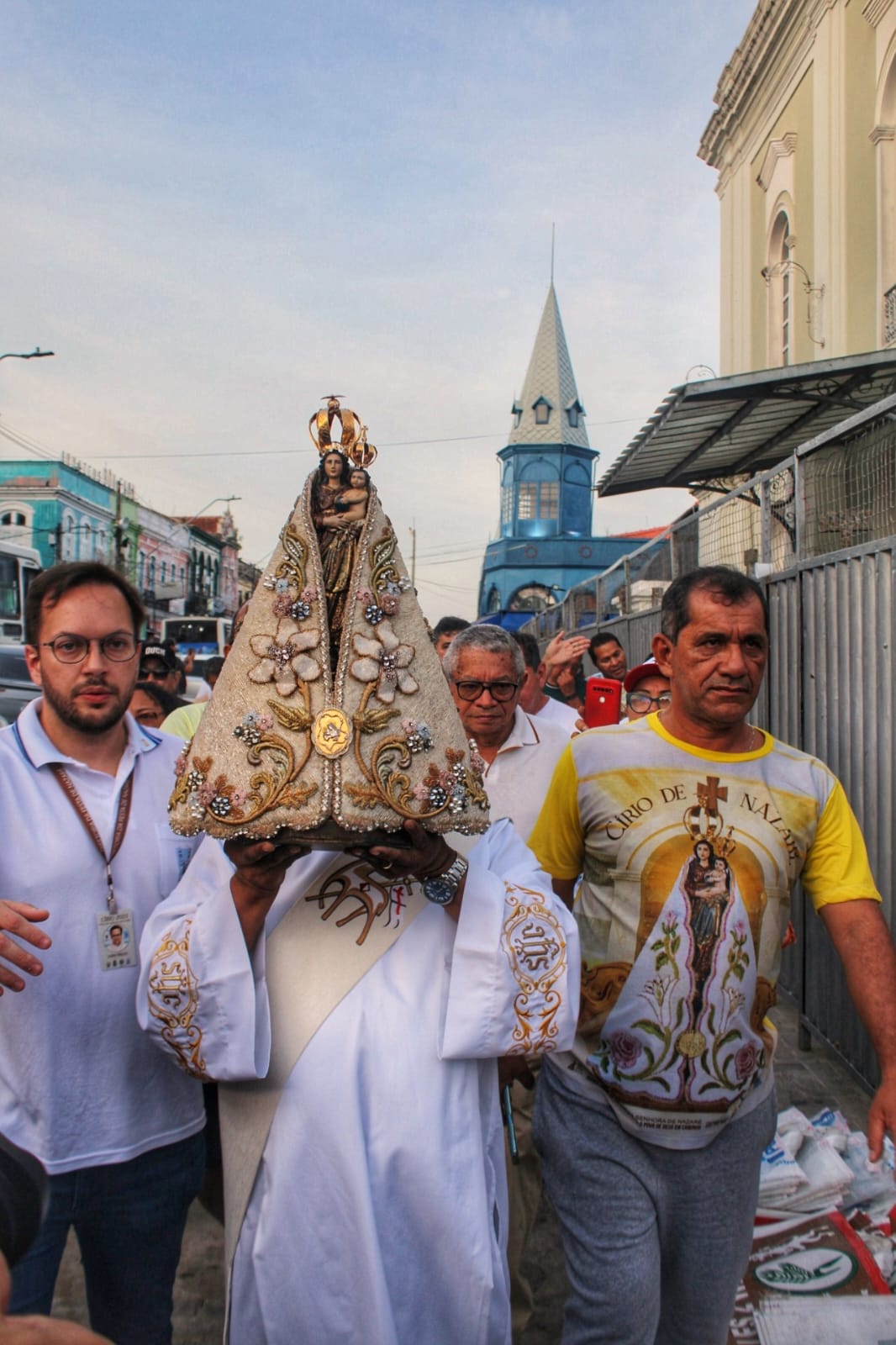 A concentração ocorreu por volta das 5h30, na Ladeira do Castelo, de onde a imagem saiu em procissão pelas ruas do centro histórico. A partir da Ladeira do Castelo, a caminhada percorreu a Feira do Açaí, a Pedra do Peixe, o Mercado de Ferro e o Ver-o-Peso, em um percurso que culminou com a celebração eucarística às 6h, presidida por Dom Paulo Andreolli, bispo auxiliar de Belém.Em cada ponto do trajeto, a emoção tomava conta de comerciantes e frequentadores.