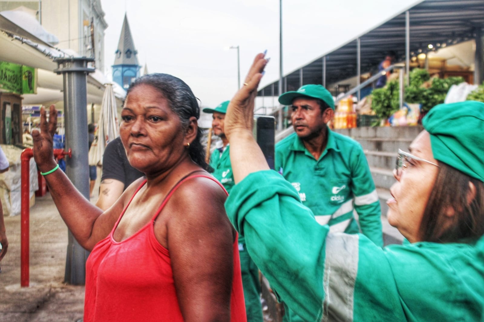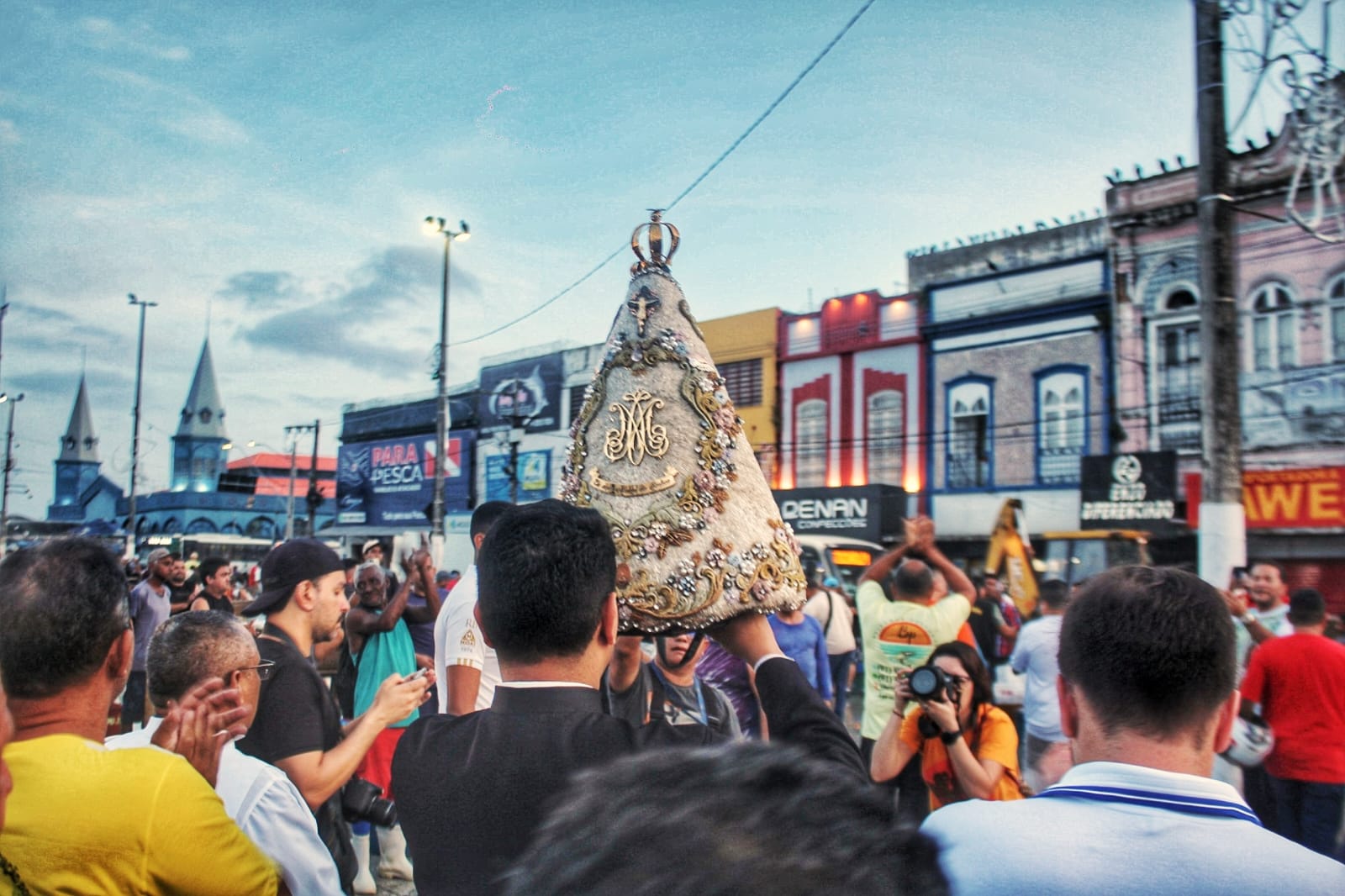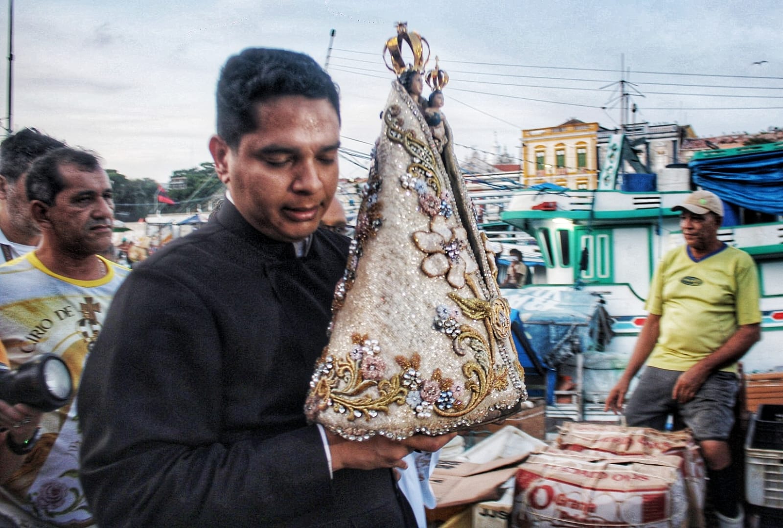 O momento da passagem da imagem pelo local, que é o maior cartão-postal da capital paraense, é sempre muito aguardada por todos que trabalham e frequentam a grande feira e os mercados lá situados.