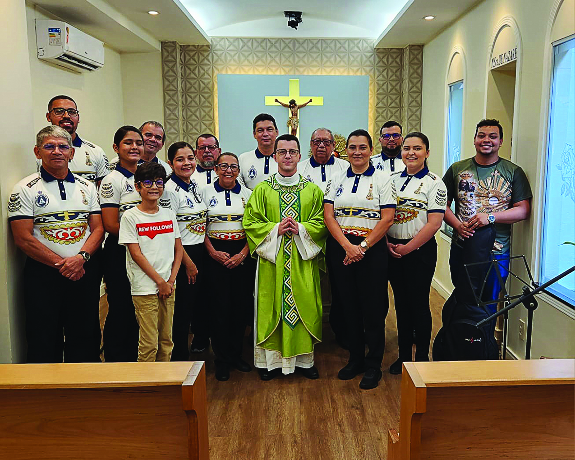 Padre Marcelo Rosa Ramos é Capelão Militar da Força Aérea Brasileira e atualmente está passando uma temporada em Belém do Pará contribuindo com a evangelização da Capitania Militar Nossa Senhora de Loreto na ausência do padre apresentada na celebração por um grupou da Guarda daquela igreja.