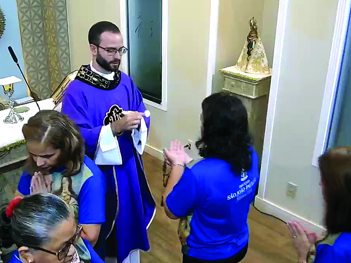 Padre Paulo saudou os telespectadores e falou de sua “alegria em estarmos reunidos hoje aqui como a Igreja São João Paulo II para rezar pela Família Nazaré, estar juntos com os nossos benfeitores que tão generosamente contribuem com a obra de Deus através da Fundação Nazaré de Comunicação. Que o Senhor possa abençoar vocês.”
