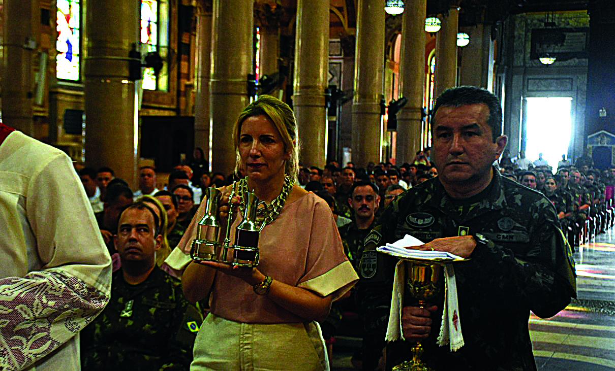 Uma missa celebrada pelo arcebispo militar do Brasil, Dom Marcony, reuniu os fiéis na Basílica Santuário de Nossa Senhora de Nazaré. Um dos momentos marcantes foi a oferta de símbolos próprios da vida militar, entre eles, a mochila de selva.