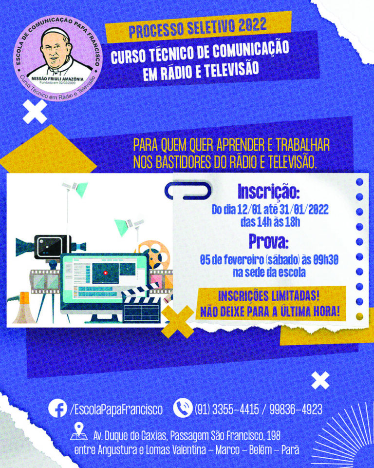 VozdeNazare Escola de Comunicação Papa Francisco está com inscrições abertas para novas turmas 13 de janeiro de 2022