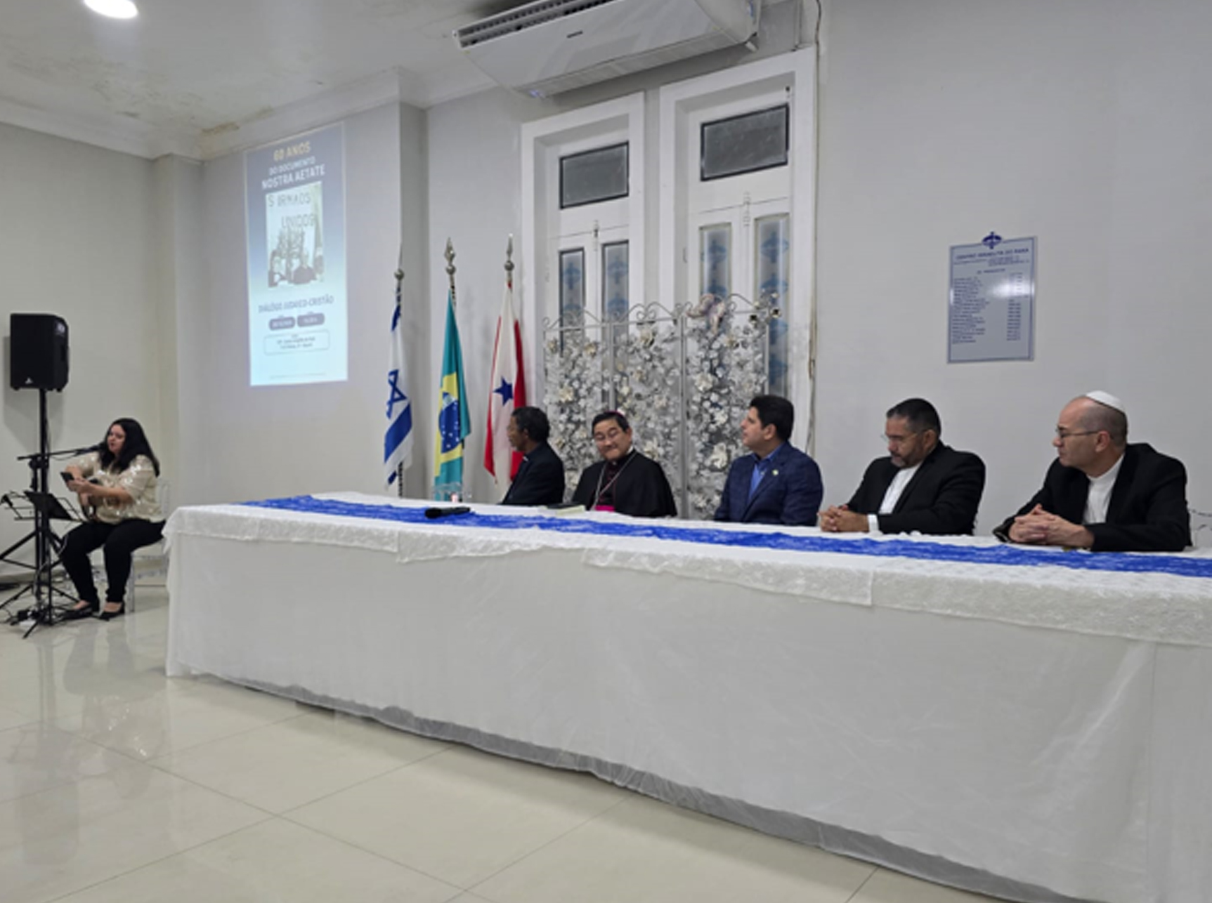 Em um ato significativo para a promoção da harmonia religiosa, a cidade de Belém sediou na noite do dia 28/10, um encontro memorável para celebrar os ’60 anos da Declaração NostraAetate’. Promulgada em 28 de outubro de 1965 pelo Papa Paulo VI, este documento do Concílio Vaticano II, que trata da relação da Igreja Católica com as Religiões Não-Cristãs, foi o centro das atenções no Centro Israelita do Pará.