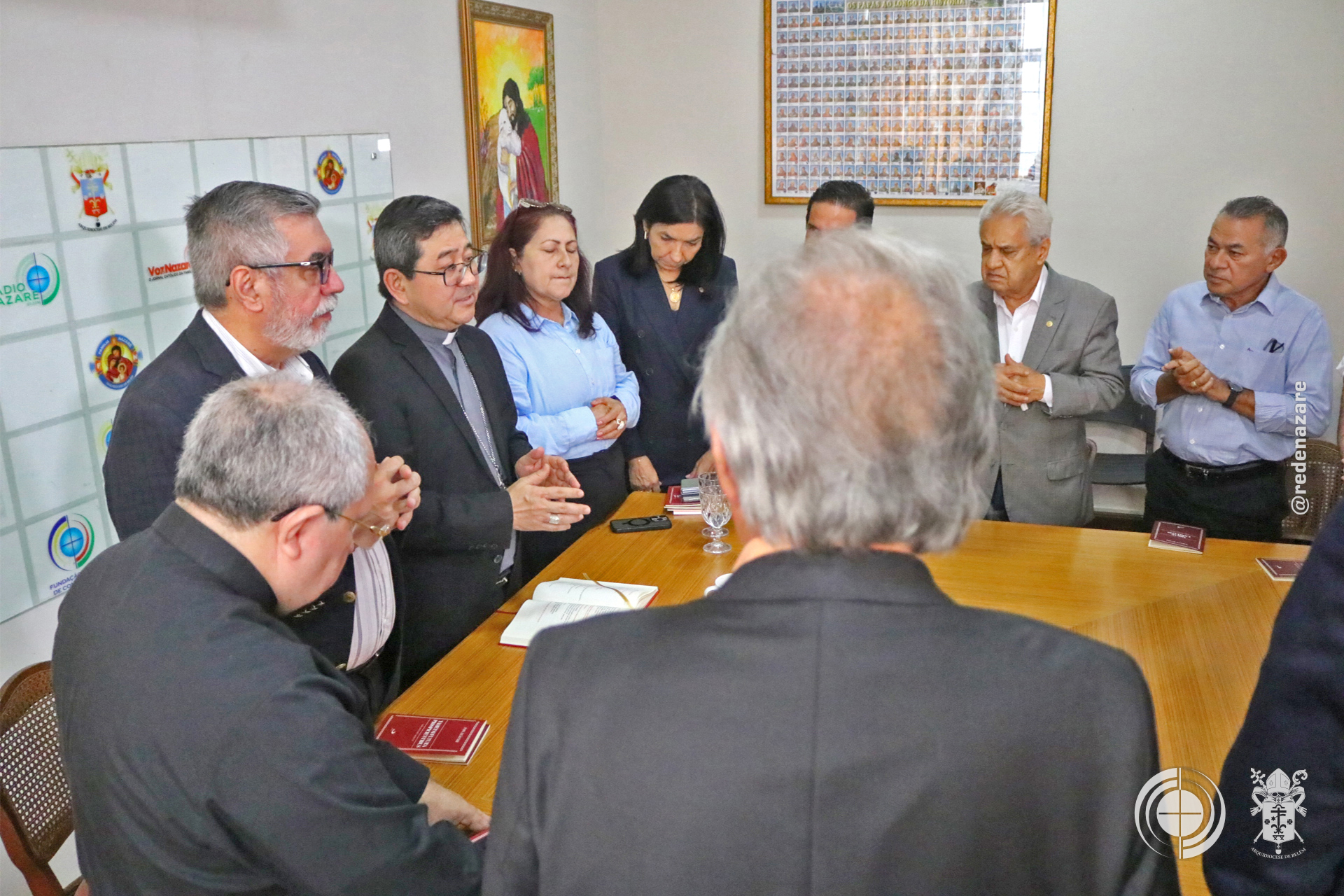 Realizado ao modo de um colóquio, o encontro ocorreu pela manhã na sala de reuniões Cúria, sendo as representações dos empreendedores recebidas pelo Arcebispo Dom Julio e pelo Monsenhor Ronaldo Menezes, Vigário Geral da Arquidiocese de Belém, e também por representantes da Fundação Nazaré de Comunicação.