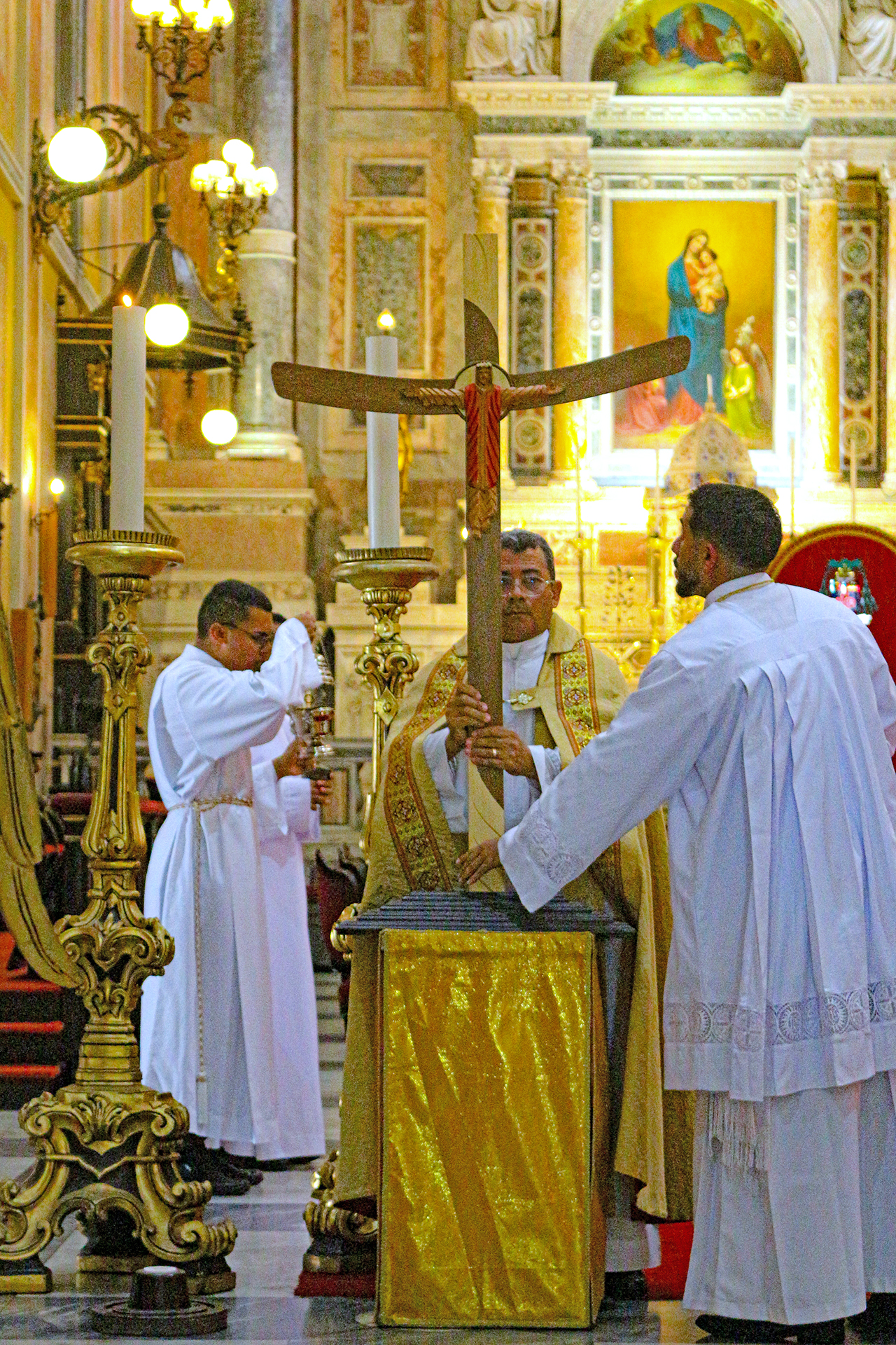 À chegada à Catedral Metropolitana de Belém foi marcada por profunda emoção dos peregrinos que, ao ouvirem solenemente “Salve, Cruz de Cristo, única esperança!”, responderam em uma só voz: Vós sois a nossa esperança, não seremos confundidos eternamente. Em seguida, toda a comunidade presente entrou pela porta principal da Sé Metropolitana. Ao final da peregrinação, celebrou-se a Solene Liturgia de Todos os Santos, sob a presidência do Diretor e concelebração de inúmeros sacerdotes pertencentes ao Movimento Providentino. Além disso, diácono, freiras, seminaristas e vocacionados estivam presentes, bem como membros professos e em formação. Houve, ainda, significativa participação das Paróquias e Área Missionária de diversos municípios do Estado que têm ou tiveram a administração liderada por um Padre Providentino.