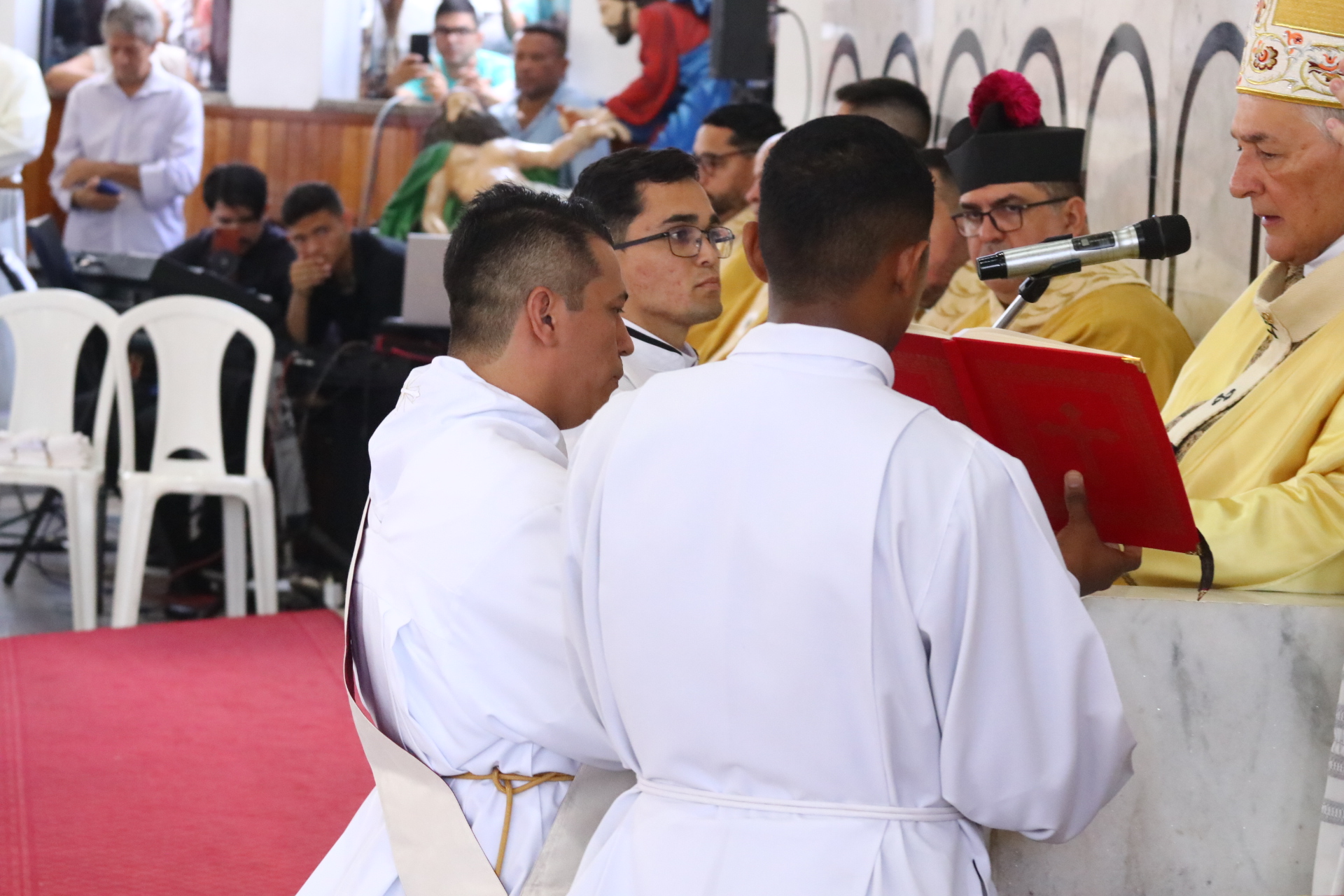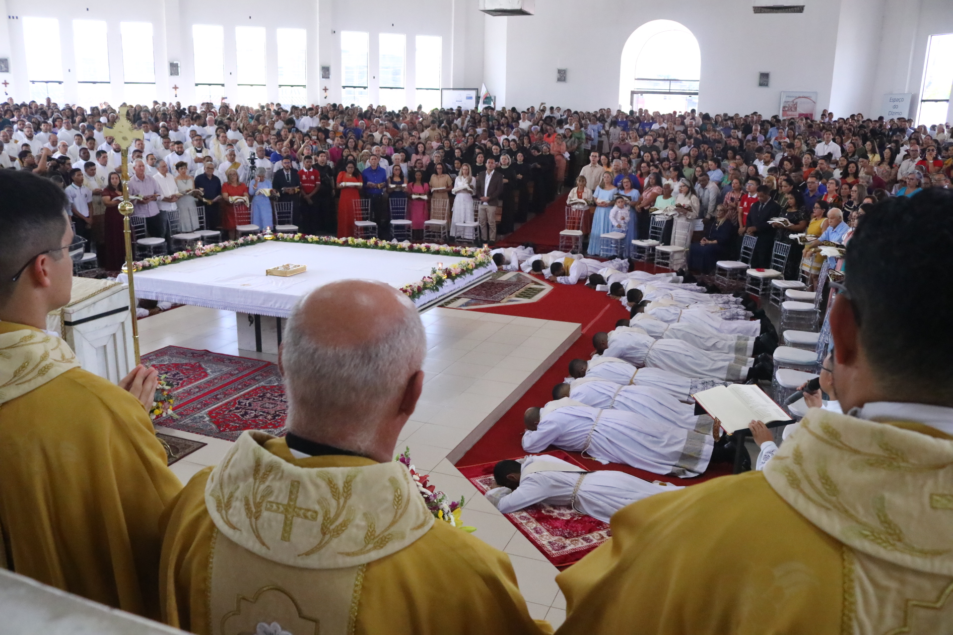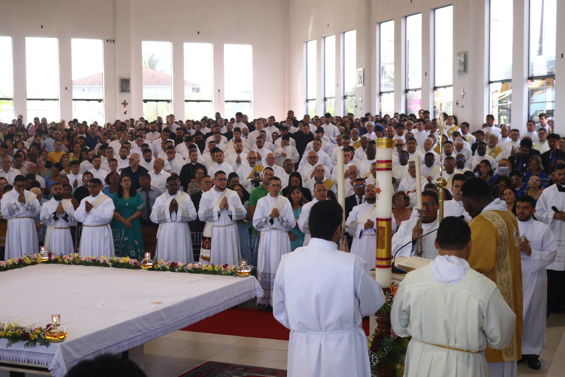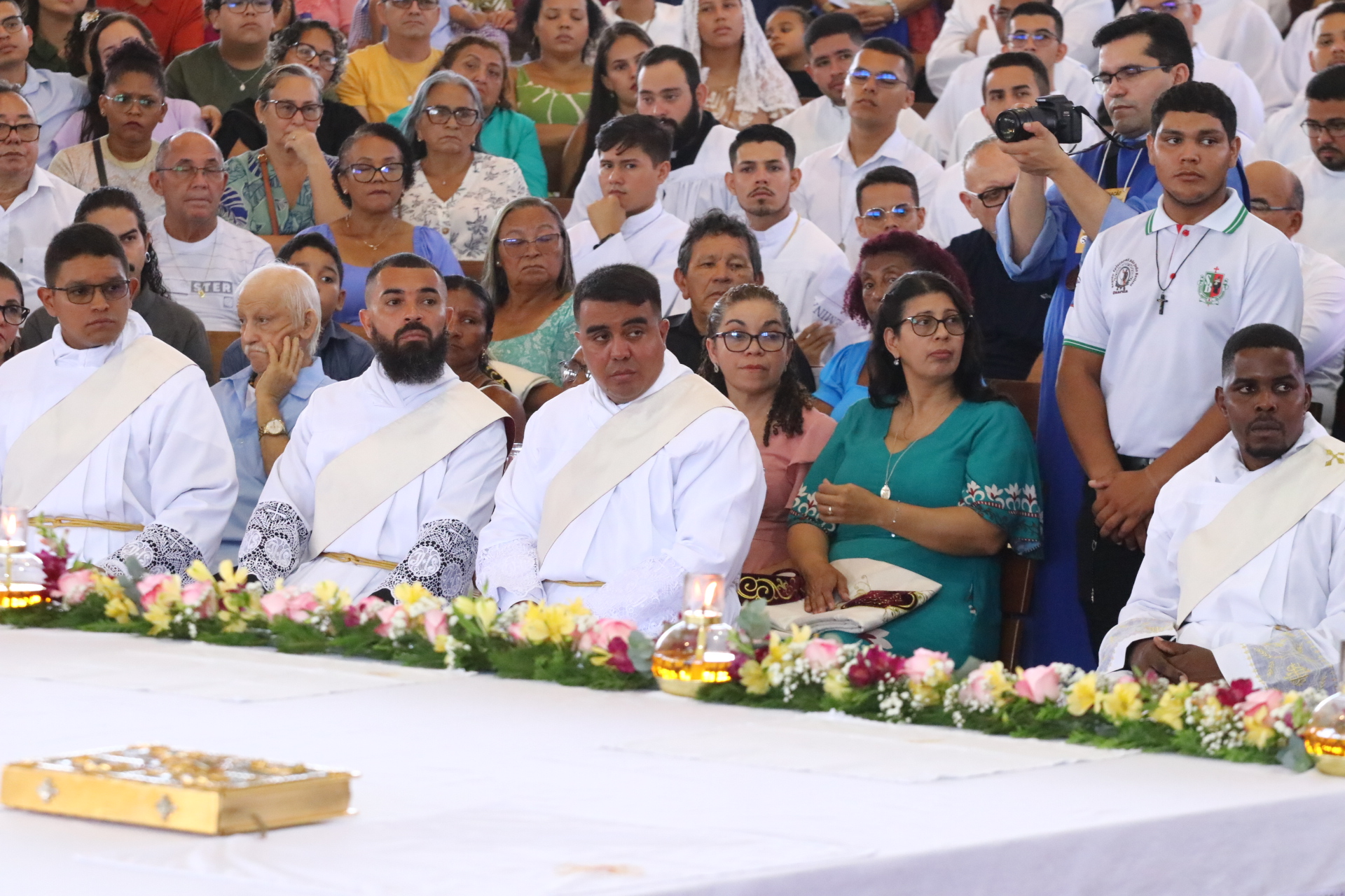 Em uma cerimônia na Paróquia Jesus Bom Samaritano, no bairro do Tapanã, Arquidiocese de Belém realizou no sábado, dia 17, a ordenação Diaconal de 11 seminaristas e a Presbiteral de 18 diáconos. A celebração foi prestigiada por familiares, amigos, convidados e demais fiéis da comunidade local, com a igreja totalmente lotada para aquela programação.