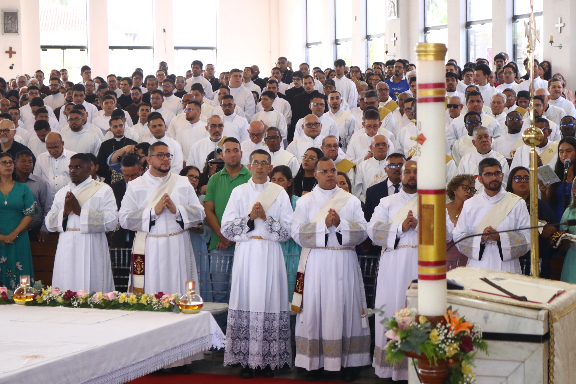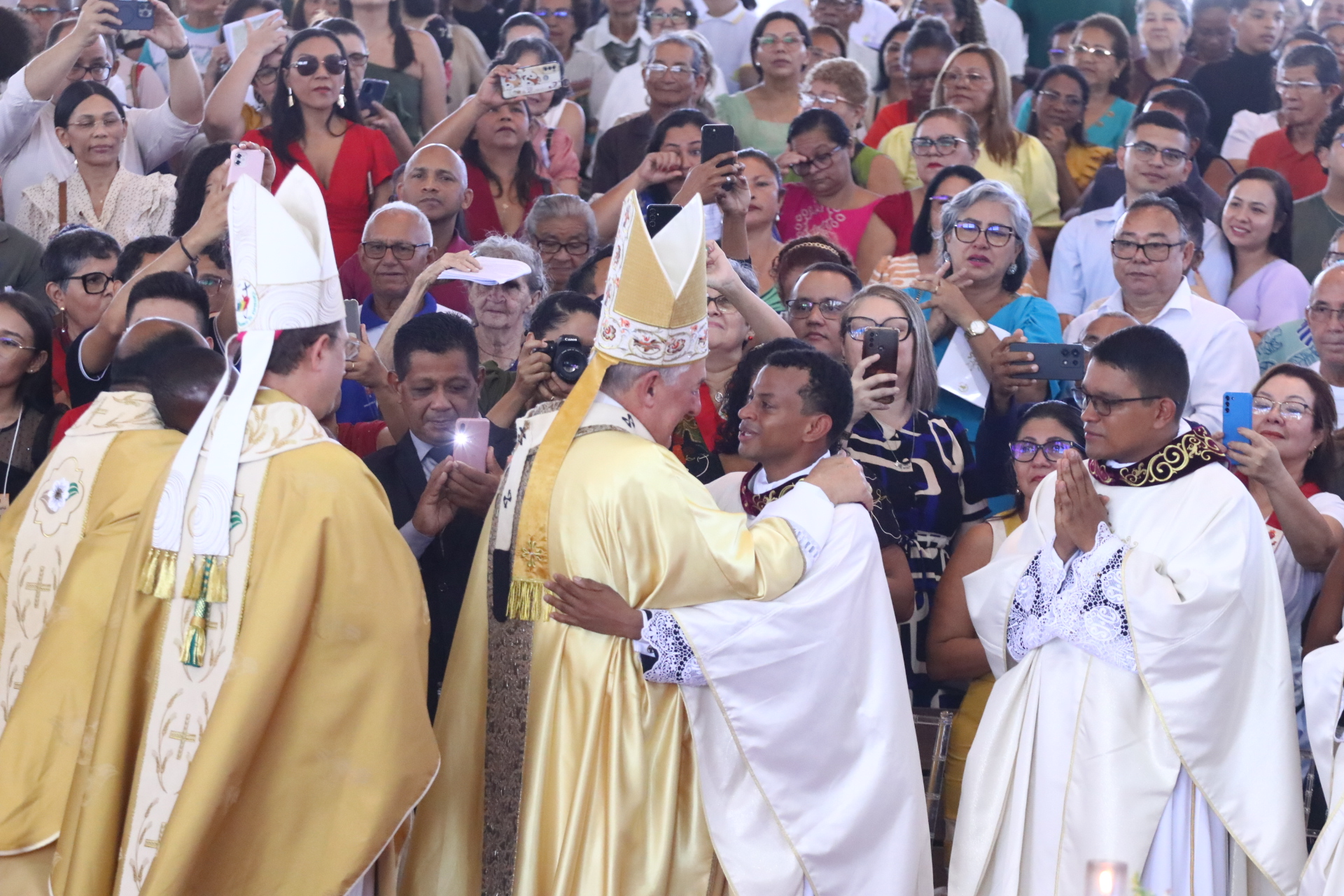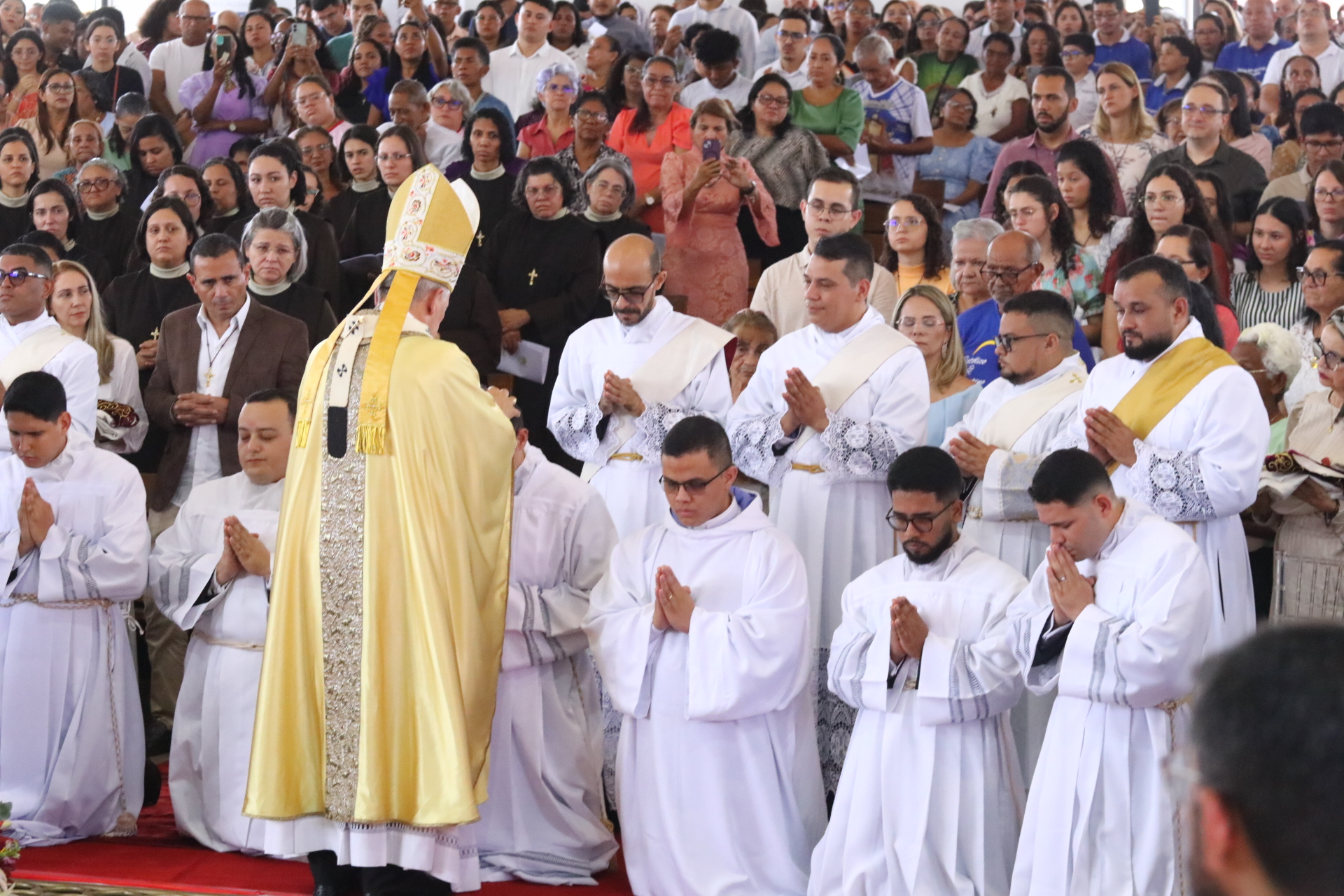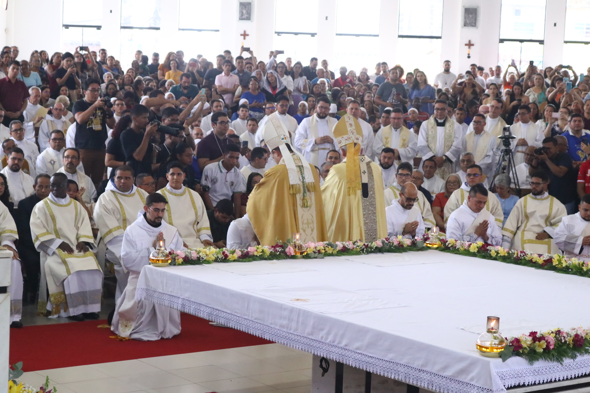 Em uma cerimônia na Paróquia Jesus Bom Samaritano, no bairro do Tapanã, Arquidiocese de Belém realizou no sábado, dia 17, a ordenação Diaconal de 11 seminaristas e a Presbiteral de 18 diáconos. A celebração foi prestigiada por familiares, amigos, convidados e demais fiéis da comunidade local, com a igreja totalmente lotada para aquela programação.