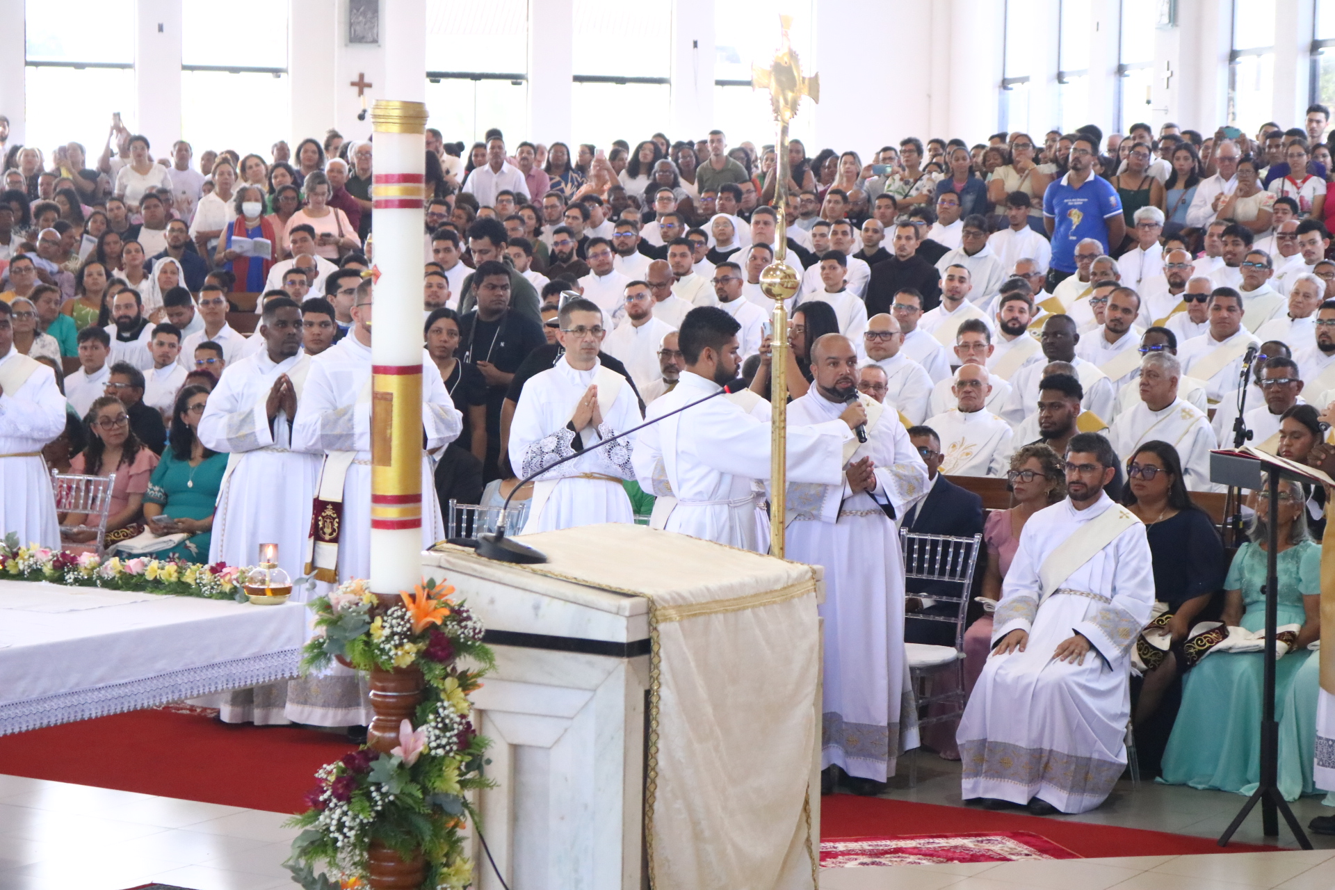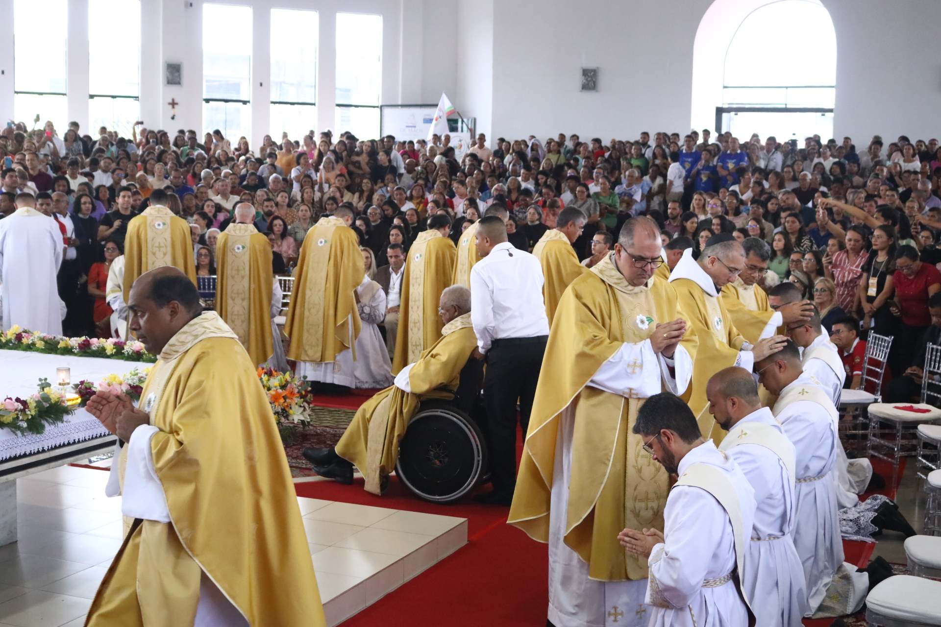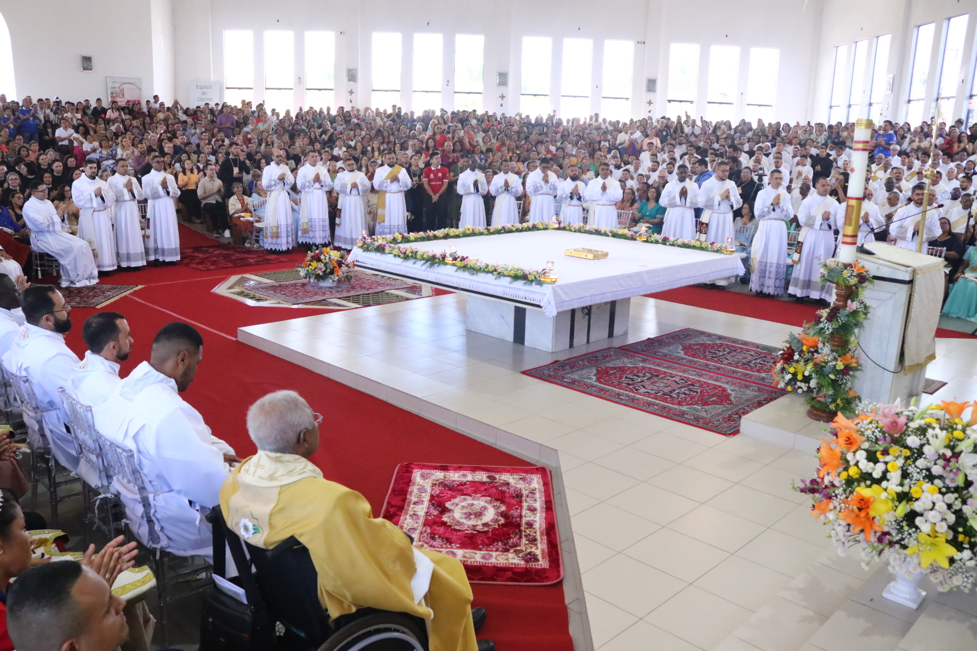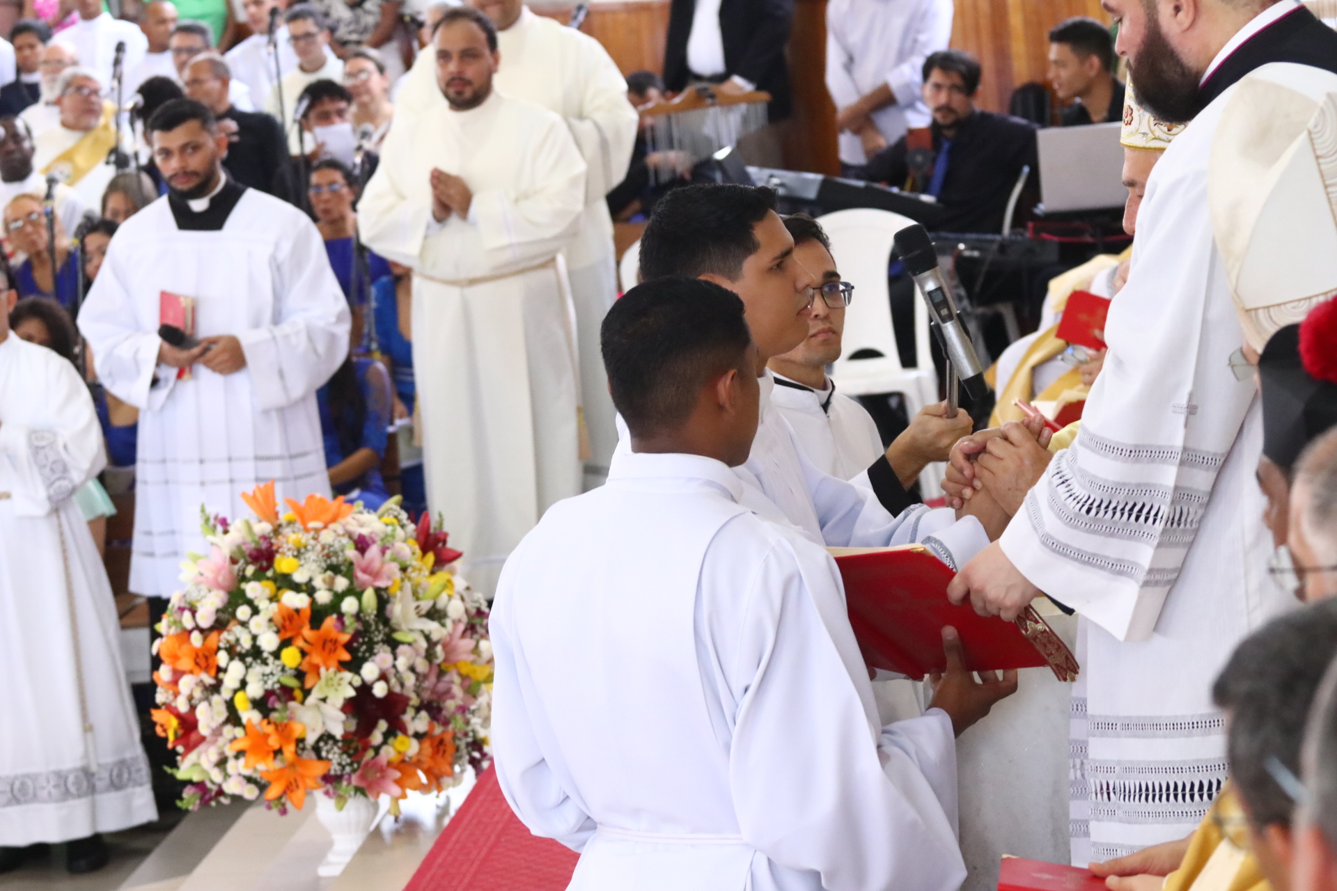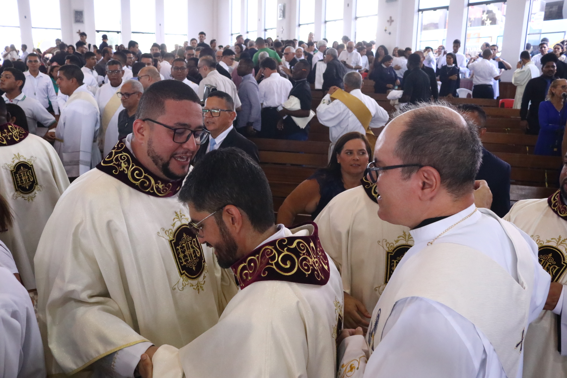 Em uma cerimônia na Paróquia Jesus Bom Samaritano, no bairro do Tapanã, Arquidiocese de Belém realizou no sábado, dia 17, a ordenação Diaconal de 11 seminaristas e a Presbiteral de 18 diáconos. A celebração foi prestigiada por familiares, amigos, convidados e demais fiéis da comunidade local, com a igreja totalmente lotada para aquela programação.