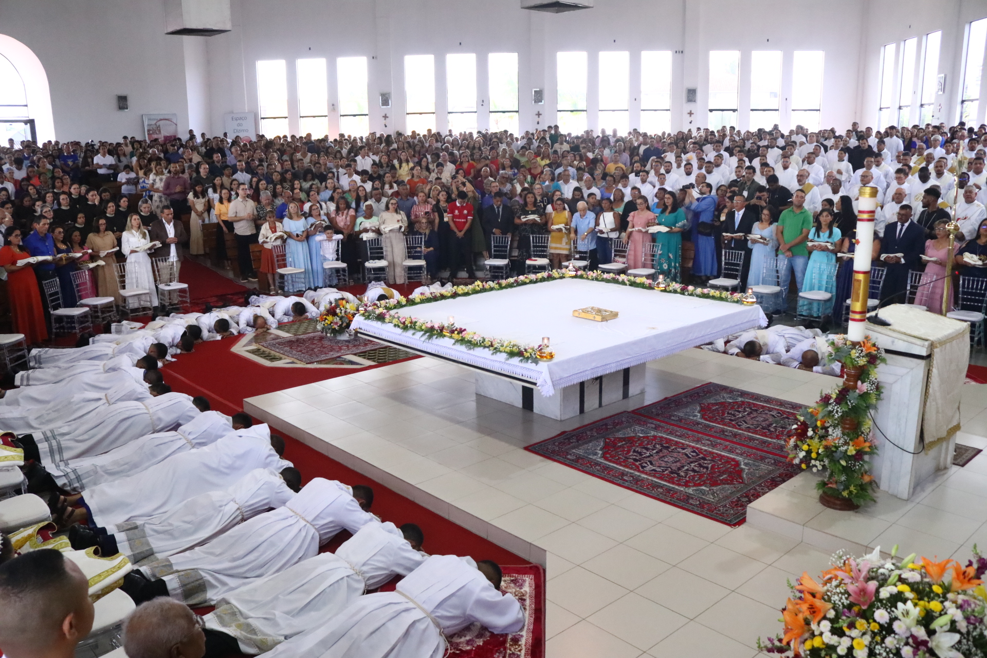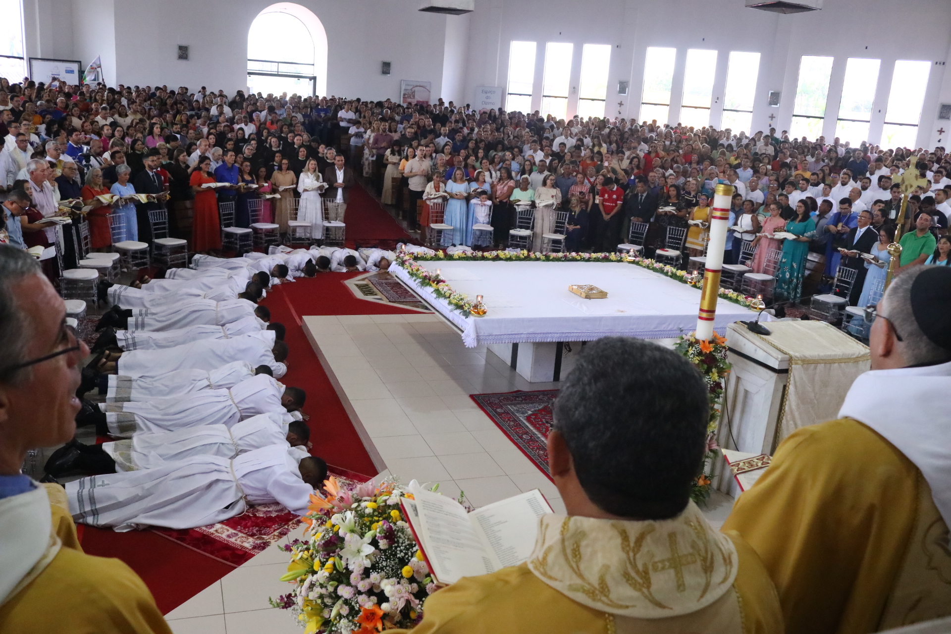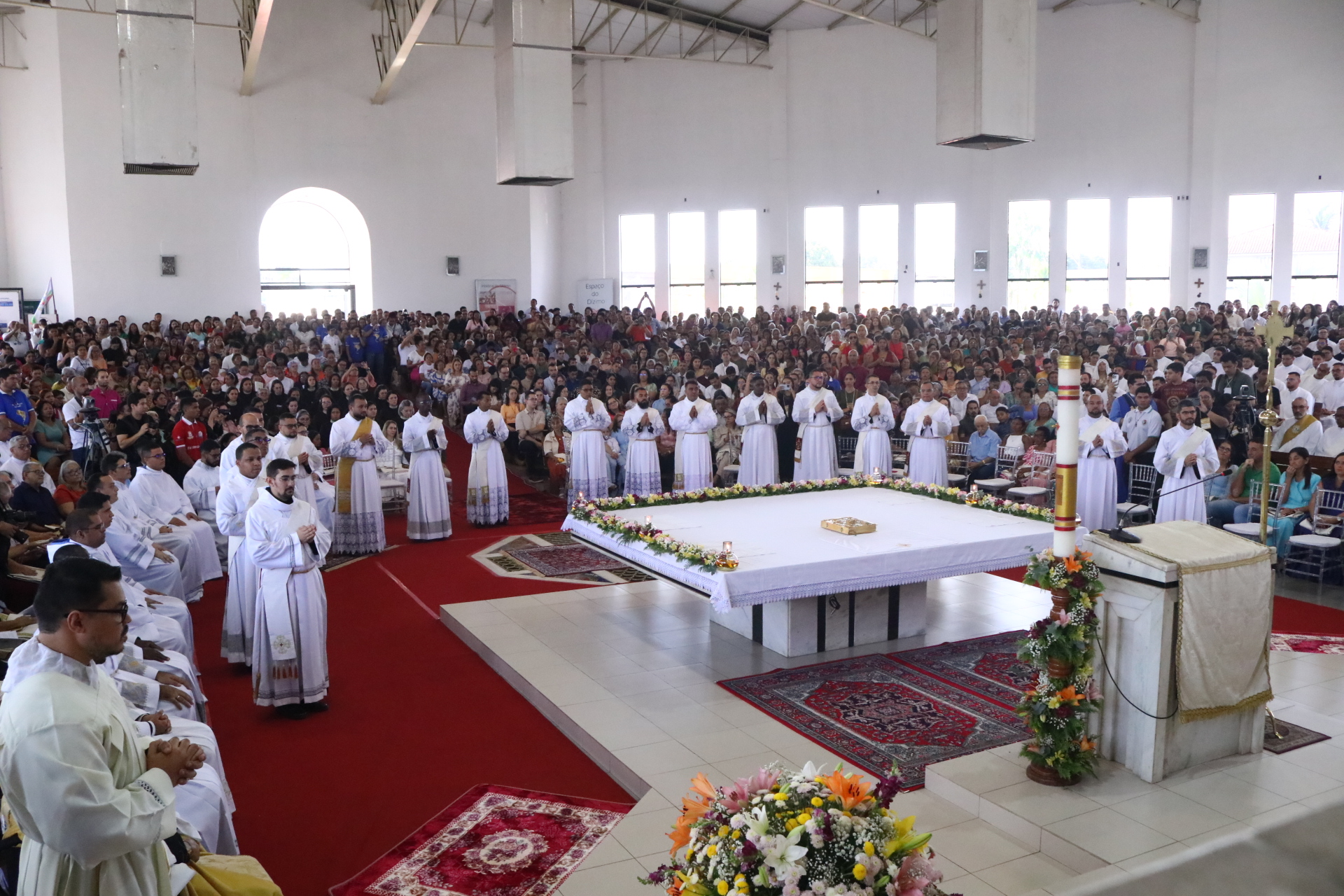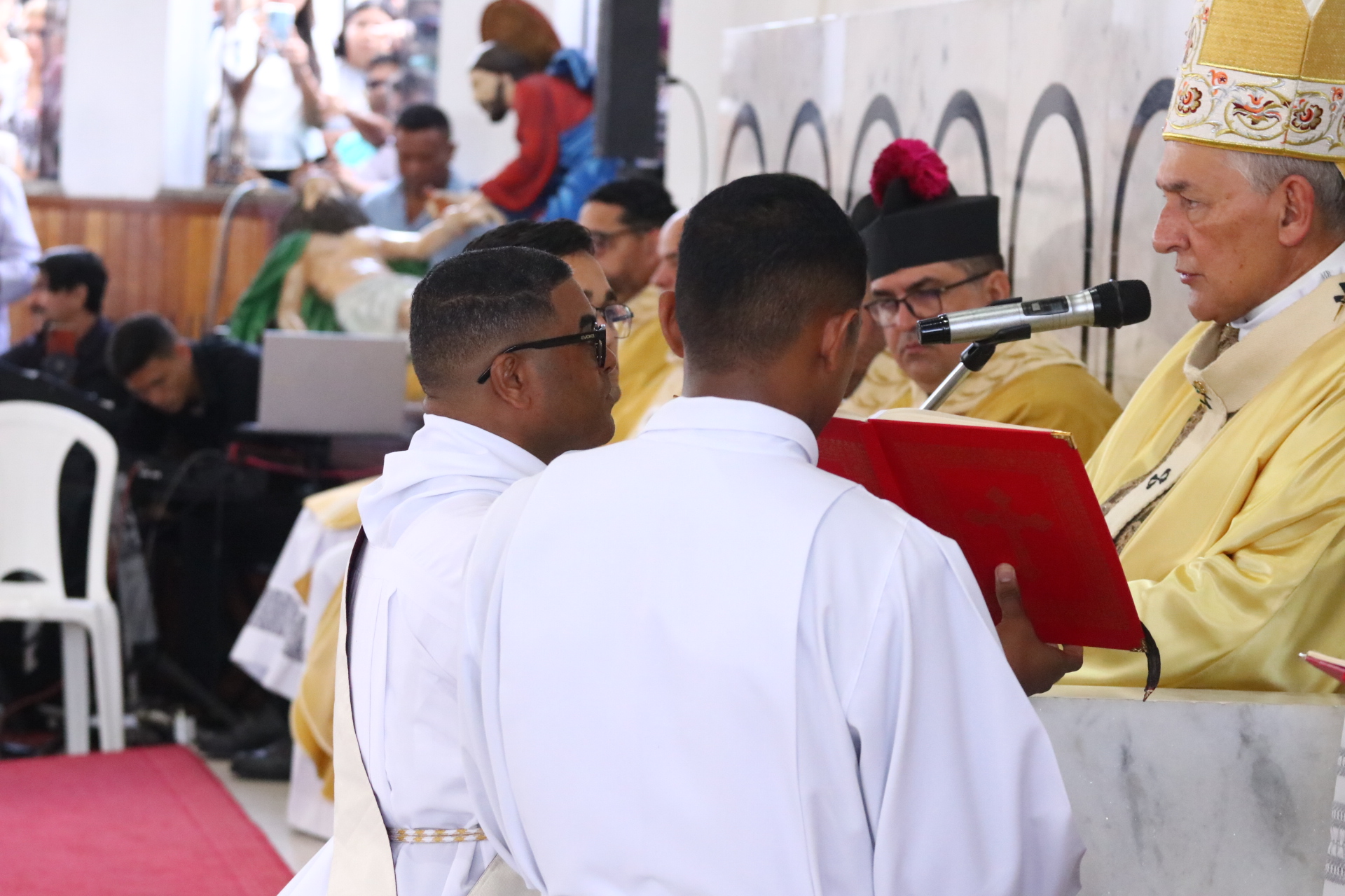 Em uma cerimônia na Paróquia Jesus Bom Samaritano, no bairro do Tapanã, Arquidiocese de Belém realizou no sábado, dia 17, a ordenação Diaconal de 11 seminaristas e a Presbiteral de 18 diáconos. A celebração foi prestigiada por familiares, amigos, convidados e demais fiéis da comunidade local, com a igreja totalmente lotada para aquela programação.