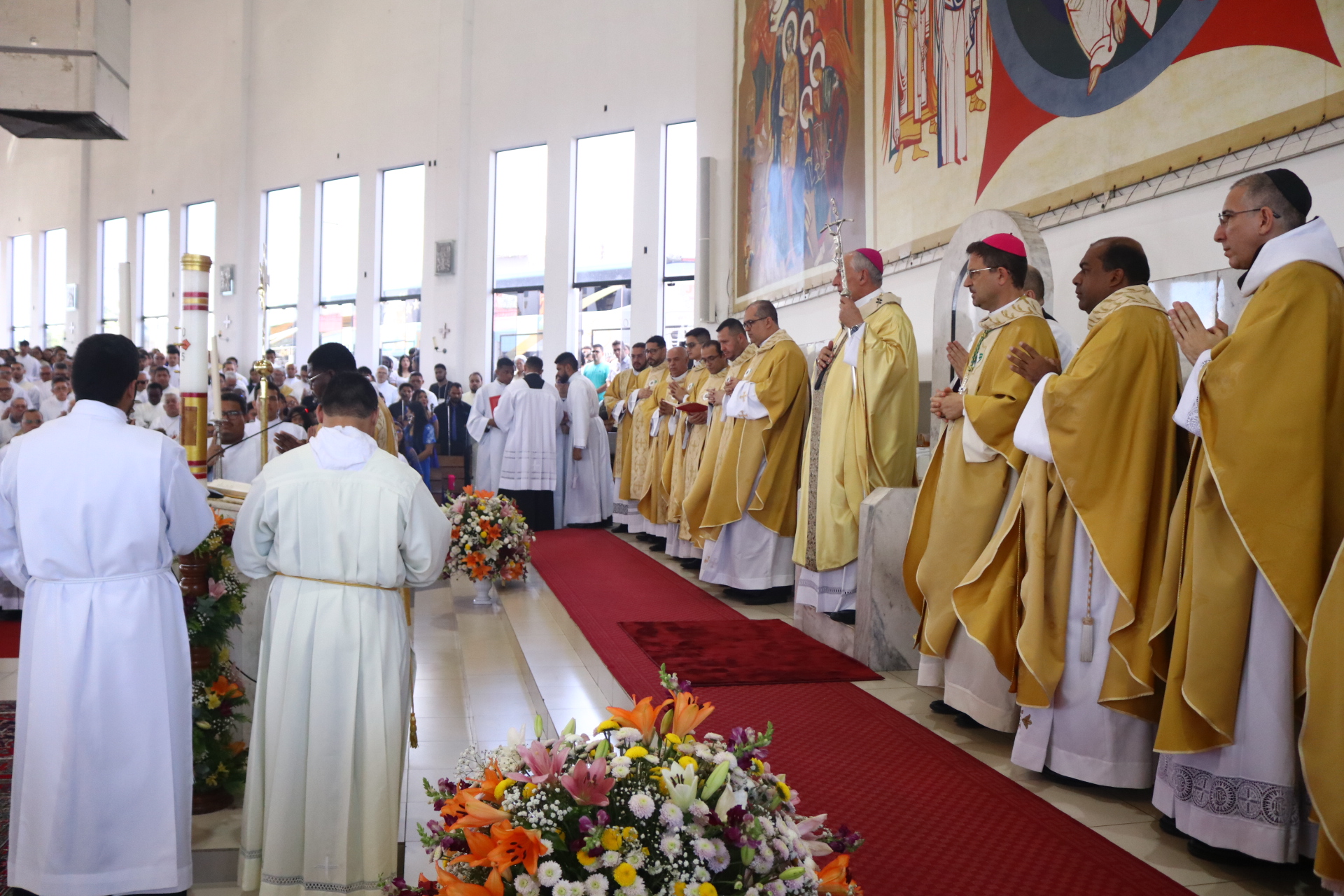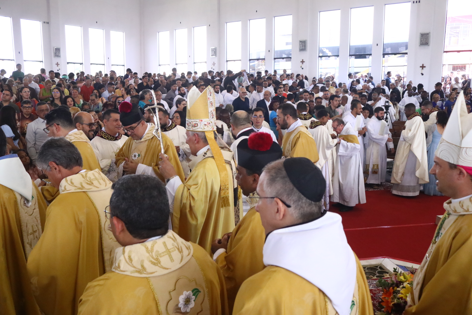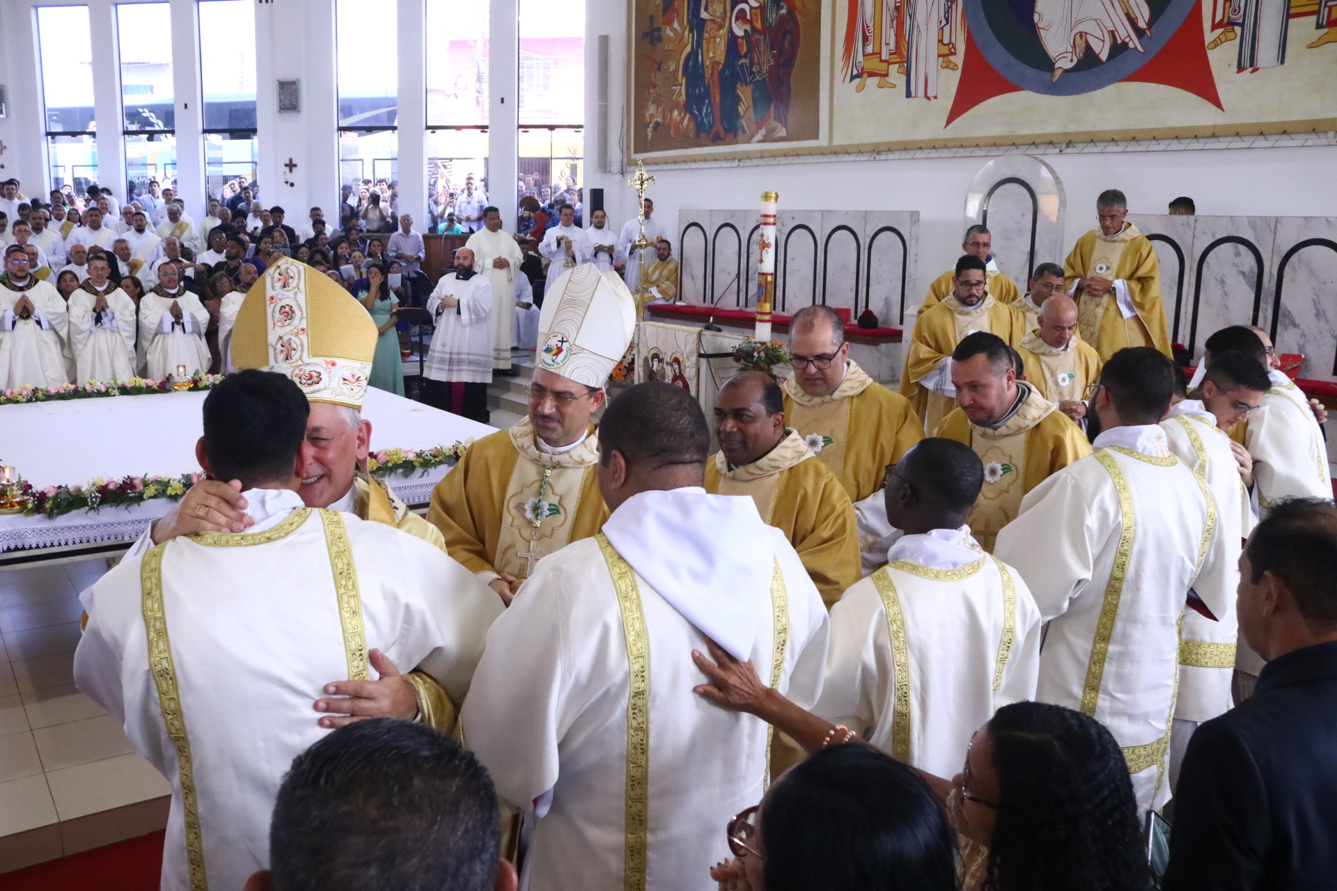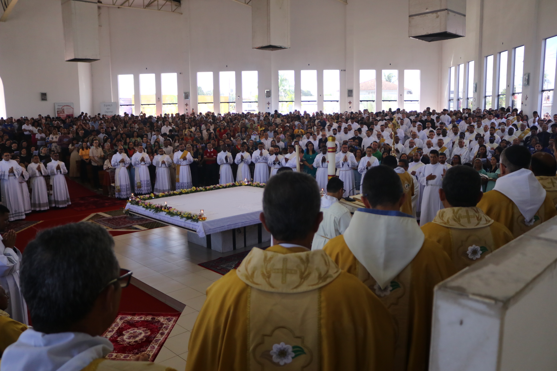 Em uma cerimônia na Paróquia Jesus Bom Samaritano, no bairro do Tapanã, Arquidiocese de Belém realizou no sábado, dia 17, a ordenação Diaconal de 11 seminaristas e a Presbiteral de 18 diáconos. A celebração foi prestigiada por familiares, amigos, convidados e demais fiéis da comunidade local, com a igreja totalmente lotada para aquela programação.