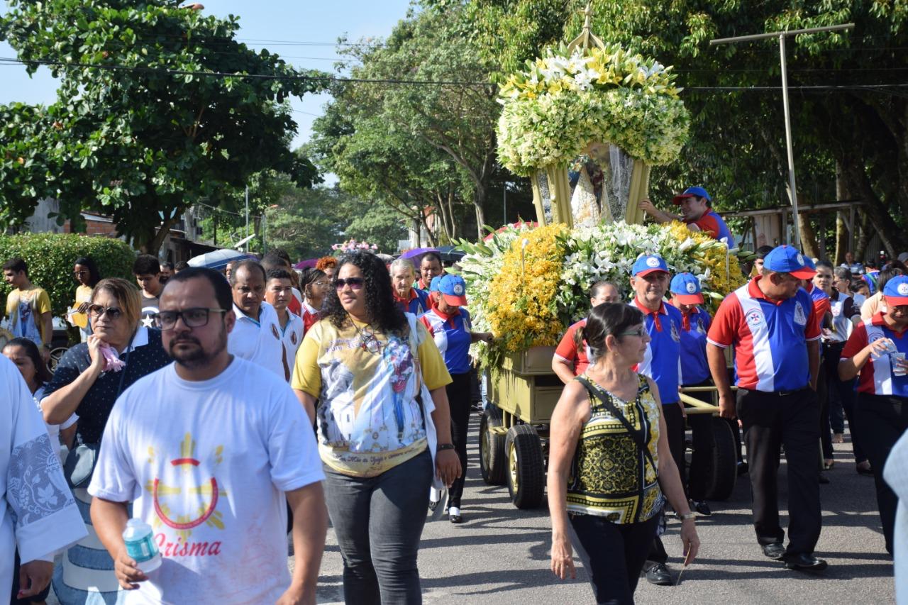 Percurso: Conjunto Pedro Teixeira-Rua A, rodovia Mário Covas, SN1, WE11, SN9, WE7, COSANPA, SN6 e WE8 até a Igreja Matriz. Na chegada da procissão terá Missa presidida pelo cônego Vladian Alves, da Paróquia Santíssima Trindade.