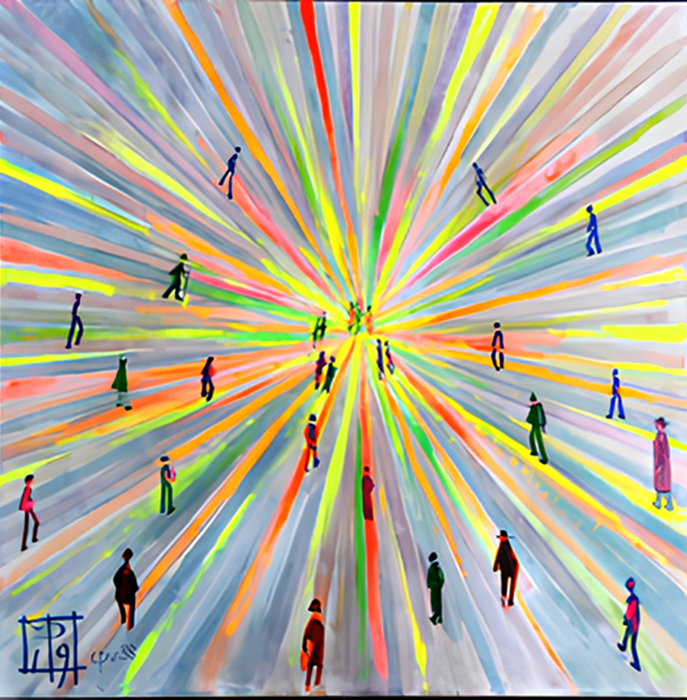 A imagem é um sol com muitos raios. Em cada raio, há pessoas caminhando na direção do sol. Quanto mais se aproximam do sol, mais próximas ficam umas das outras. O sol é Deus; os raios são a vontade de Deus para cada um.