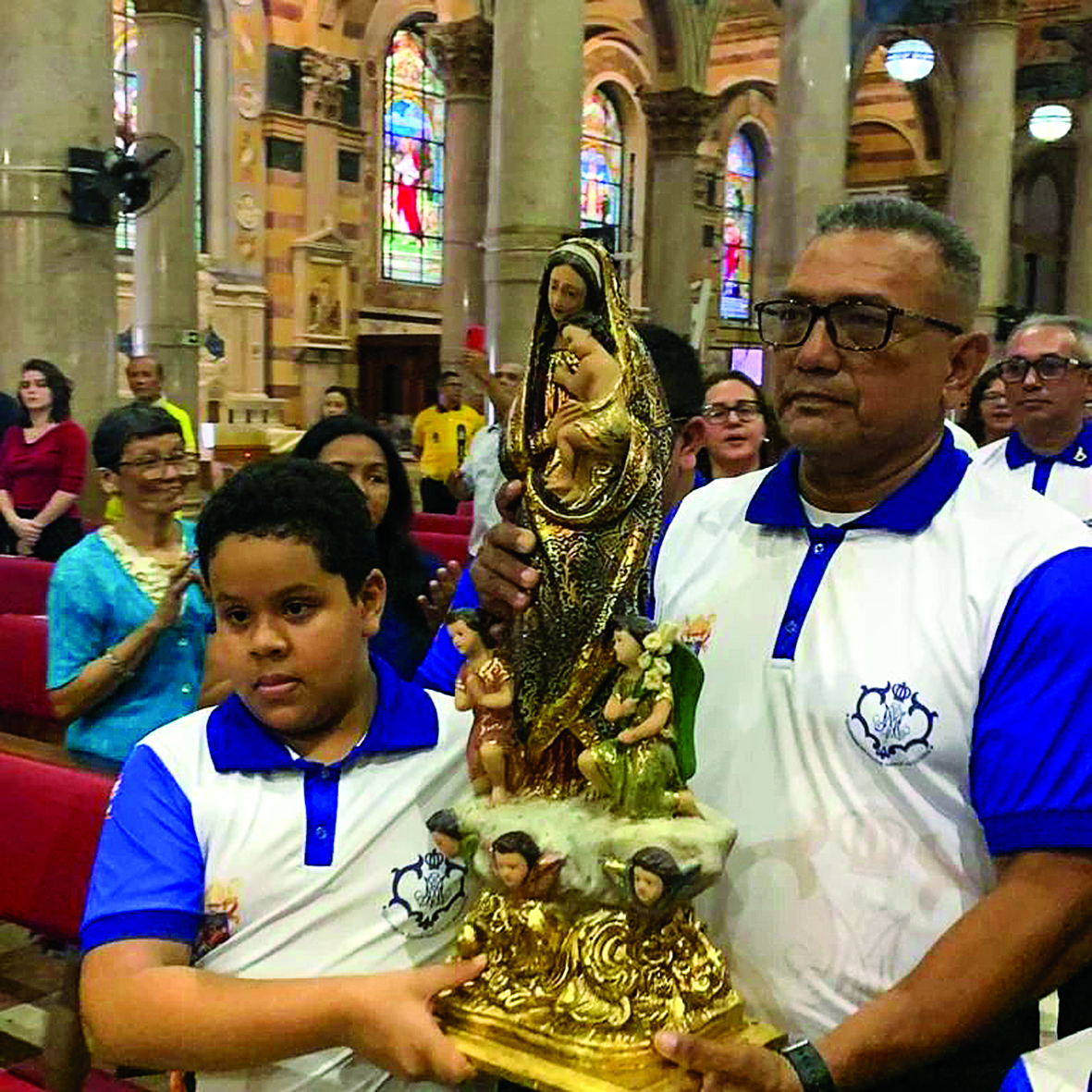 Começando a festa – Concluída a peregrinação, uma momento especial aconteceu dia 22. A imagem de Santa Maria de Belém foi entronizada em lugar de destaque no altar durante a visita à Basílica Santuário de Nossa Senhora de Nazaré. Na ocasião, houve Missa às 18h, presidida por Mons. Agostinho e transmitida ao vivo pela Rede Nazaré de Televisão.