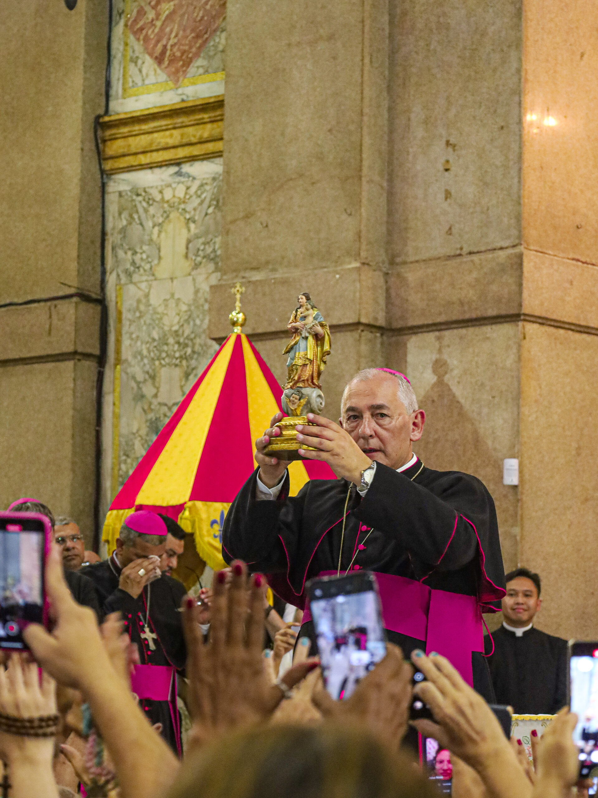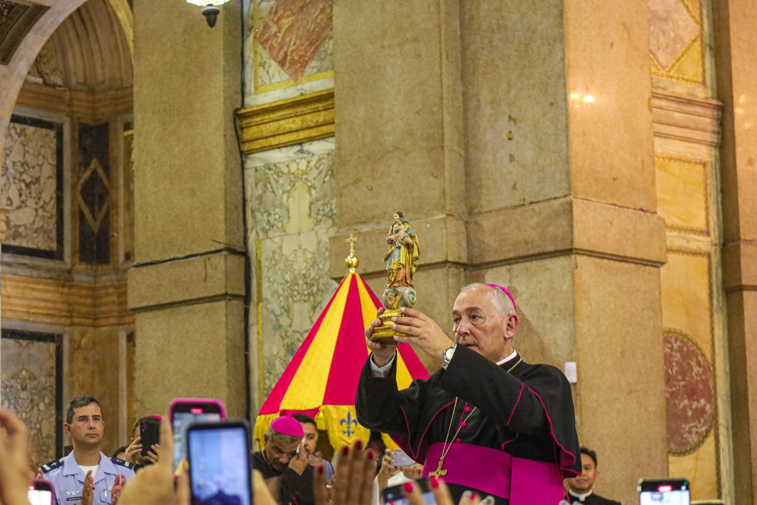 Na manhã de sábado, 7 de outubro, a Basílica Santuário tornou-se pequena para a imensa quantidade de romeiros e fiéis que buscavam um lugar para acompanhar a cerimônia de