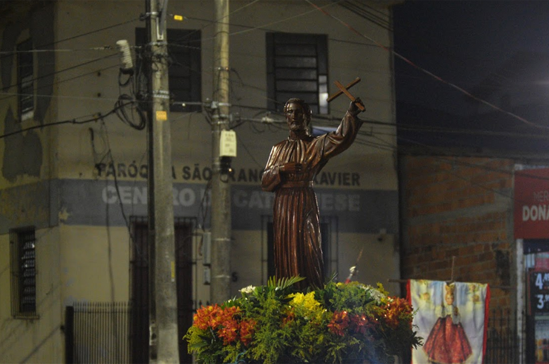 O exemplo de São Francisco Xavier, que levou a Palavra de Deus aos mais distantes povos, motivou a homenagem da comunidade paroquial ao padroeiro no final da Santa Missa, repassada à assembleia ao estilo de uma peça teatral em que os integrantes contaram a trajetória do santo. “Enviados para anunciar o Evangelho, devemos nos esforçar para essa missão, não importa os desafios. Hoje, superamos os nossos para expressar a Deus a nossa gratidão também”, declarou uma das organizadoras da homenagem.