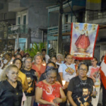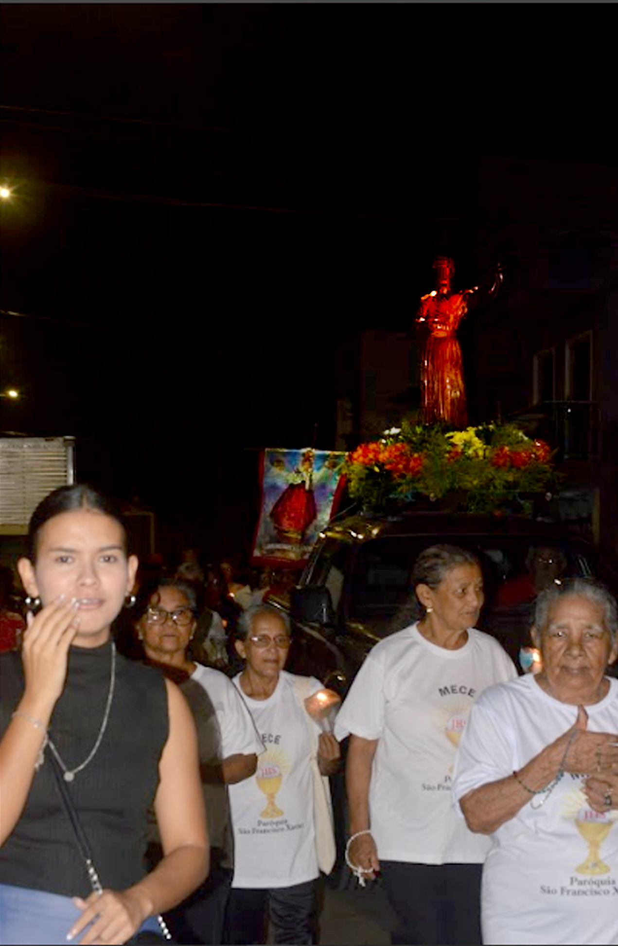 A leiga Aureni Moreira, acompanhada pelo filho João, era uma das mais entusiasmadas participantes da procissão, “muito feliz por participar da festividade da minha paróquia. Venho celebrar todas as graças que recebo da missão que me foi confiada por Deus aqui. Só gratidão por muitas felicidades que eu tenho vivido com minha família, tudo graças à intercessão de São Francisco Xavier”, comenta, animada a missionária que atua como Ministra Extraordinária da Sagrada Comunhão e também das Exéquias, uma vivência de fé expressa nos mais de 70 anos de vida.