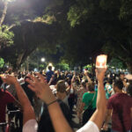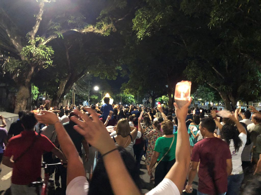 A tradição de levar velas acesas durante o percurso simboliza fé e esperança, como testemunhou dona Rosa Mendes.
