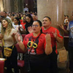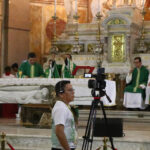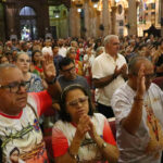 A Basílica Santuário acolheu os profissionais da Imprensa e centenas de casais do Encontro de Casais com Cristo (ECC) Arquidiocesano na última segunda-feira, 6, para a Missa de envio em missão para o Círio de Nazaré 2025. Diante de fiéis que lotaram a igreja, eles receberam a benção realizar a cobertura da maior manifestação de fé Mariana do povo no Estado do Pará, assim como os casais que vão atuar como coleteiros nas romarias, com o objetivo de arrecadar as doações dos fiéis em benefício da Fundação Nazaré de Comunicação.