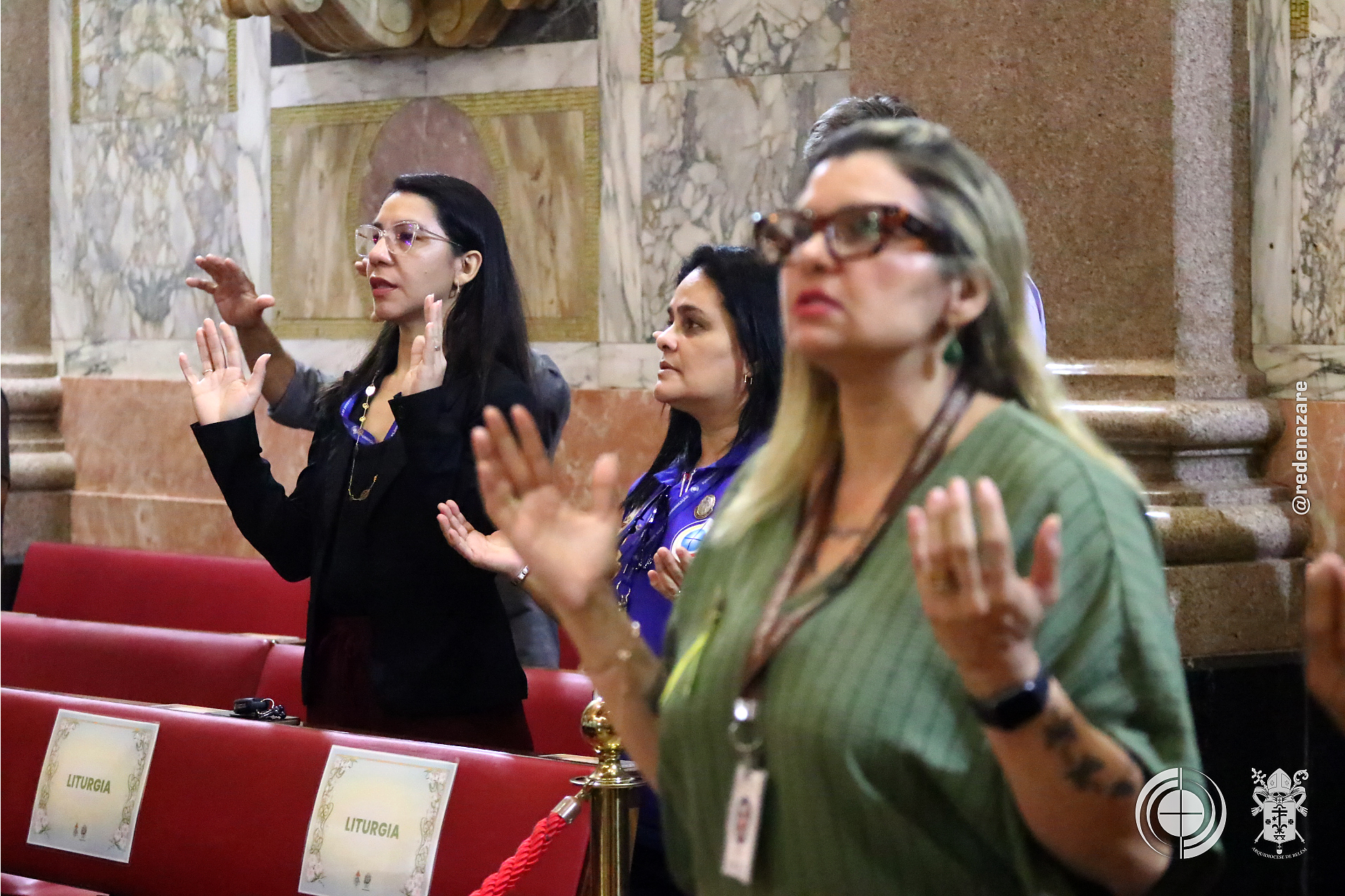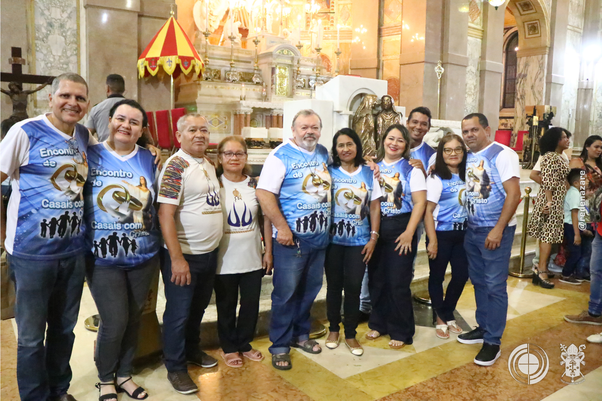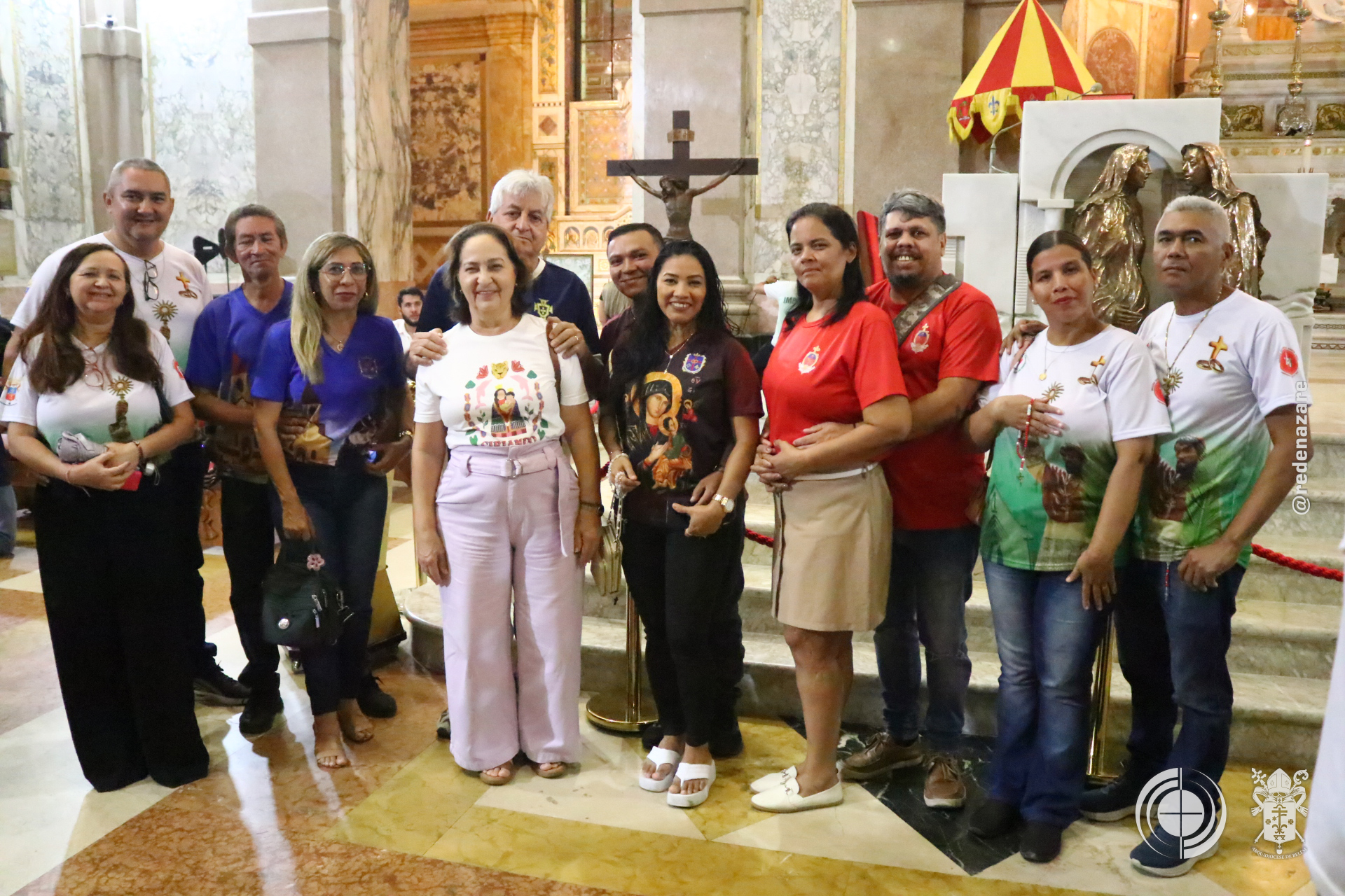A Basílica Santuário acolheu os profissionais da Imprensa e centenas de casais do Encontro de Casais com Cristo (ECC) Arquidiocesano na última segunda-feira, 6, para a Missa de envio em missão para o Círio de Nazaré 2025. Diante de fiéis que lotaram a igreja, eles receberam a benção realizar a cobertura da maior manifestação de fé Mariana do povo no Estado do Pará, assim como os casais que vão atuar como coleteiros nas romarias, com o objetivo de arrecadar as doações dos fiéis em benefício da Fundação Nazaré de Comunicação.