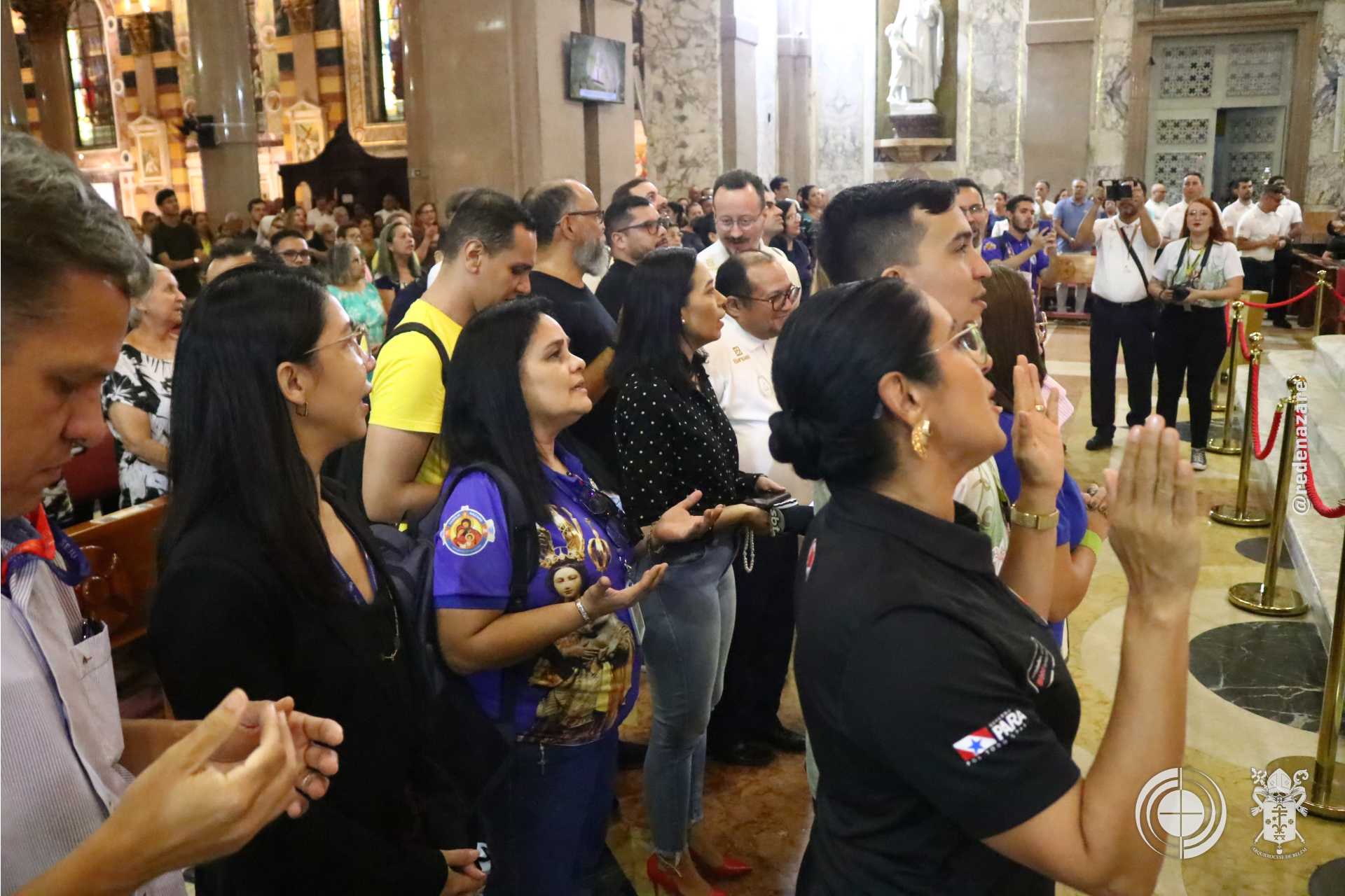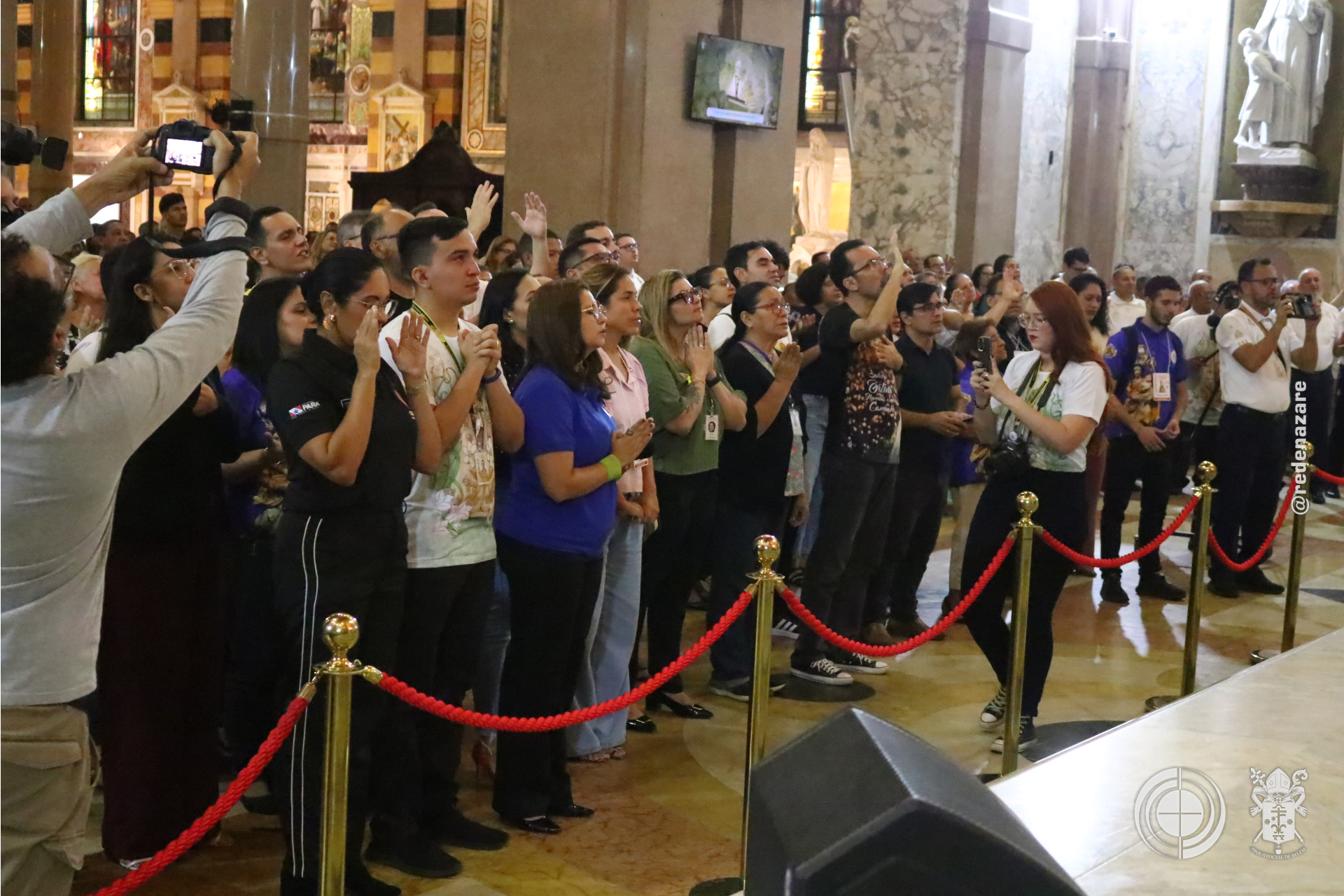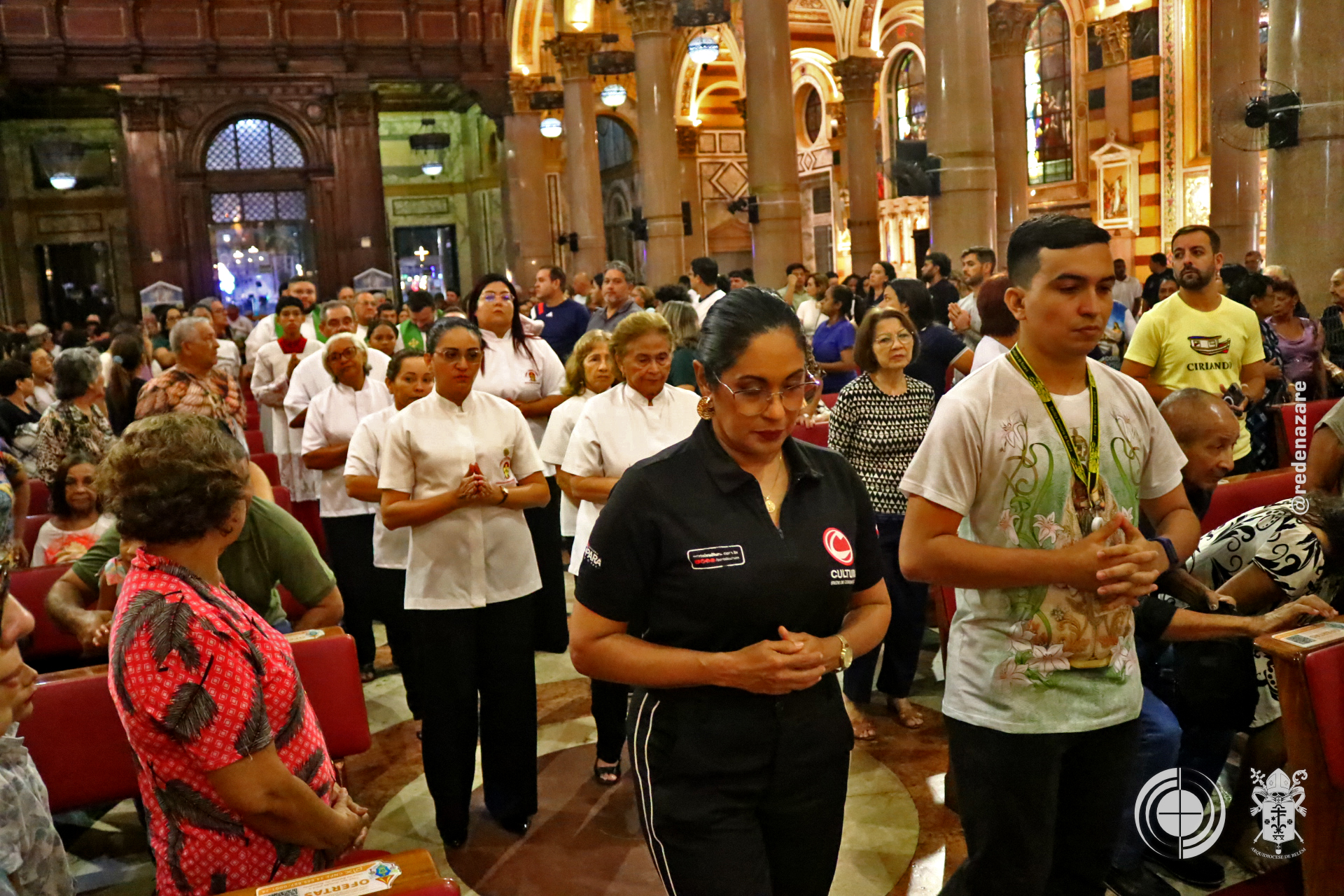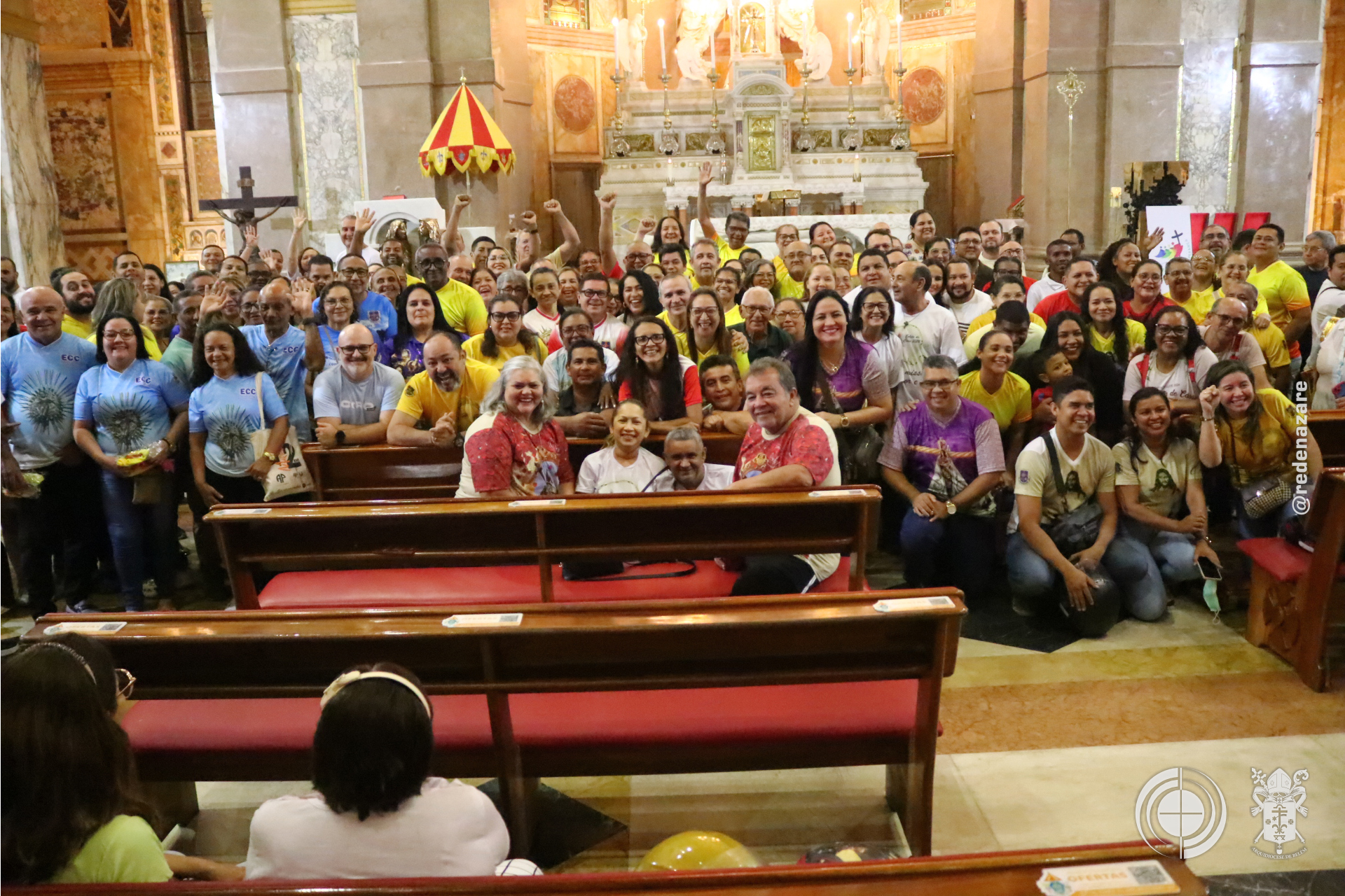 A Basílica Santuário acolheu os profissionais da Imprensa e centenas de casais do Encontro de Casais com Cristo (ECC) Arquidiocesano na última segunda-feira, 6, para a Missa de envio em missão para o Círio de Nazaré 2025. Diante de fiéis que lotaram a igreja, eles receberam a benção realizar a cobertura da maior manifestação de fé Mariana do povo no Estado do Pará, assim como os casais que vão atuar como coleteiros nas romarias, com o objetivo de arrecadar as doações dos fiéis em benefício da Fundação Nazaré de Comunicação.