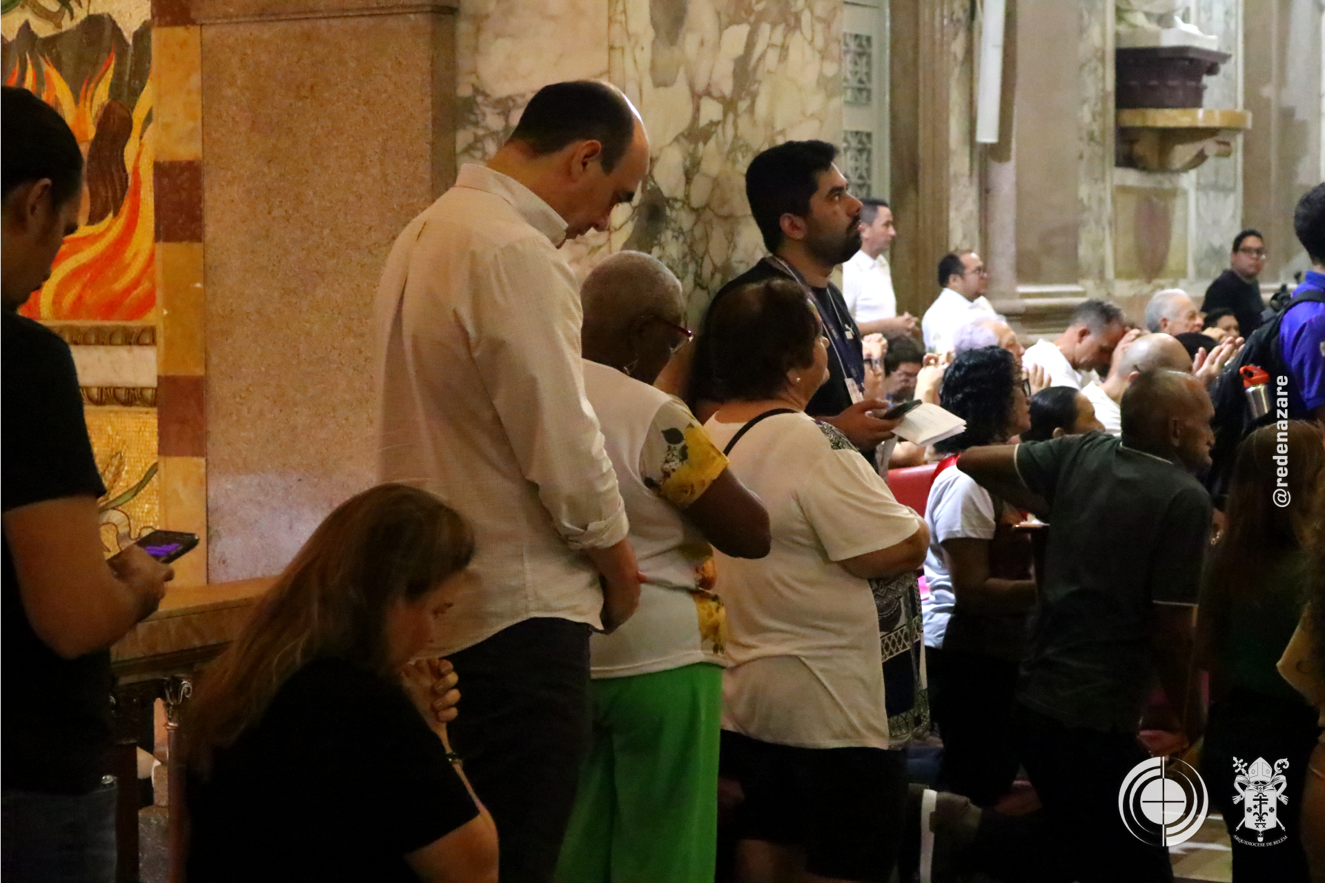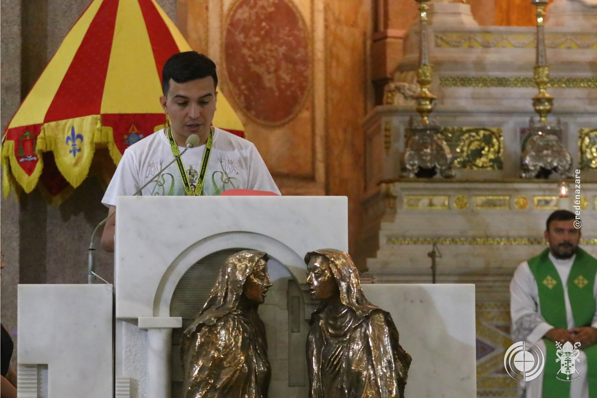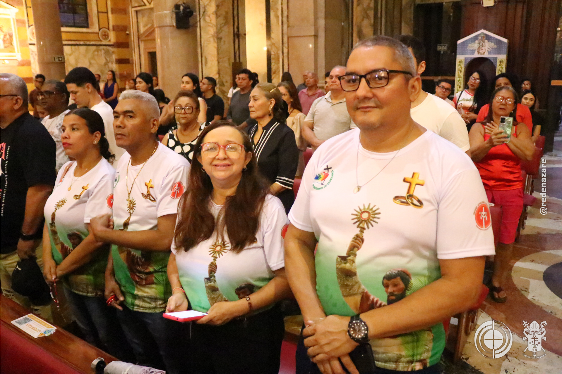 Outra observação importante foi a que padre Josué fez referente aos casais das paróquias da Arquidiocese de Belém, que estavam presentes à celebração. “Esses casais, nos próximos dias, estarão dando testemunho de uma missão especial, peculiar: vão caminhar junto conosco nas procissões buscando aquilo que você tem para ofertar a Deus. Não é uma missão fácil, seu testemunho maior já a própria doação de si mesmos que estão entregando a Deus, ao deixar suas famílias e seus afazeres para recolher a doação de nossos irmãos durante o Círio”.
