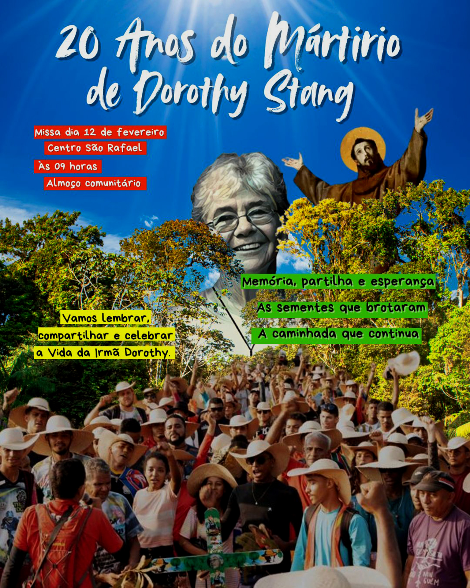 Dia 12 de fevereiro completam-se 20 anos do assassinato de Irmã Dorothy Stang. Era um sábado, bem cedo, em 2005, quando Irmã Dorothy foi assassinada com seis tiros à queima roupa, numa estrada do interior de Anapu, Região da Transamazônica, no Estado do Pará.