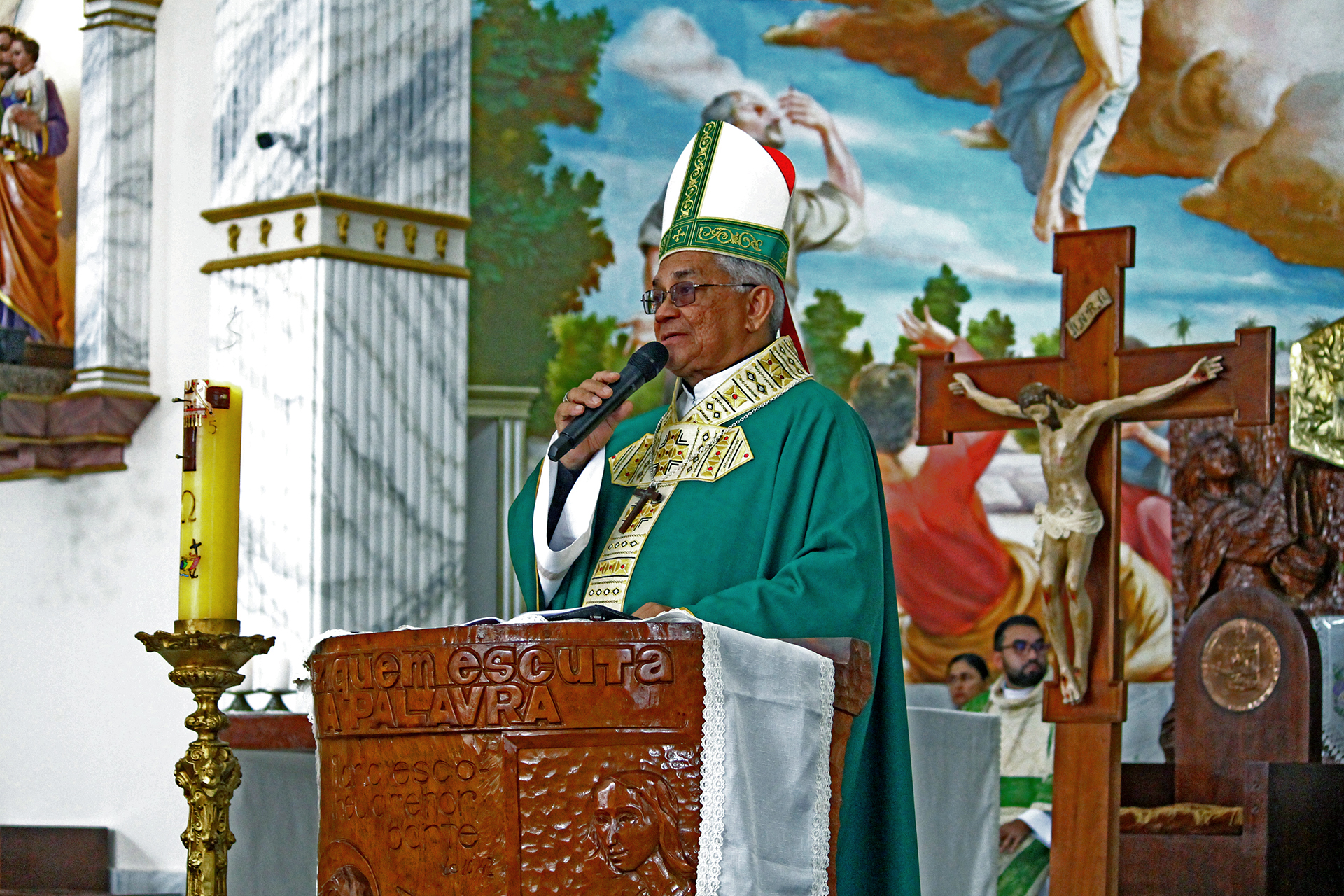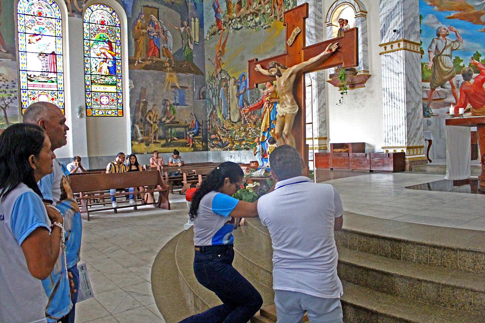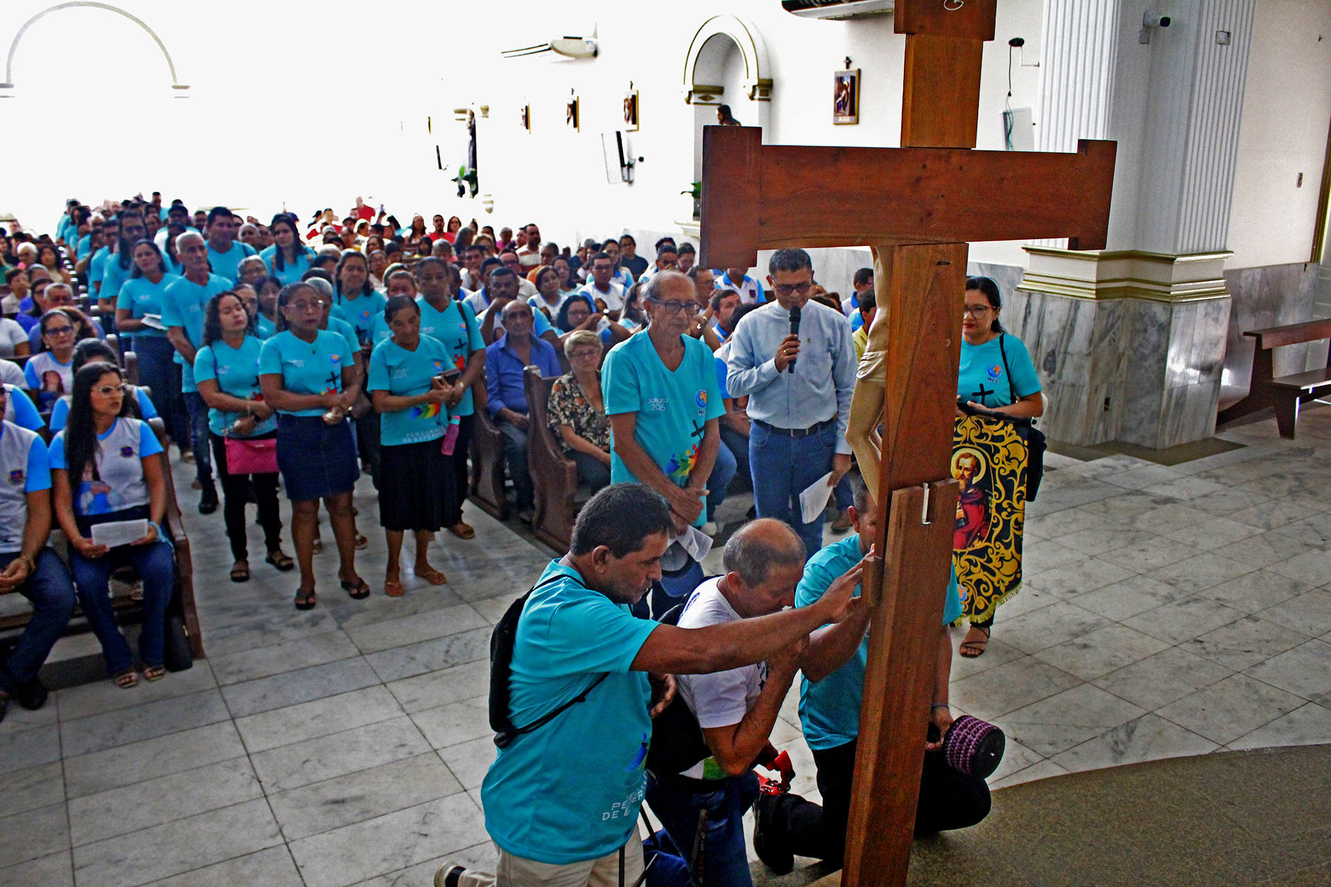 A jornada começou cedo, às 6h30, com a chegada dos participantes e concentração diante da cruz. Às 8h20, realizou-se a entrada solene com bênção, seguida da Santa Missa às 8h30, presidida por Dom Raimundo Possidônio, bispo diocesano, e concelebrada pelo Pe. Ronaldo Barroso.