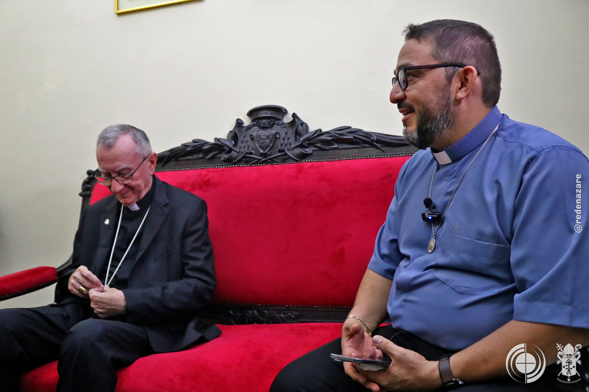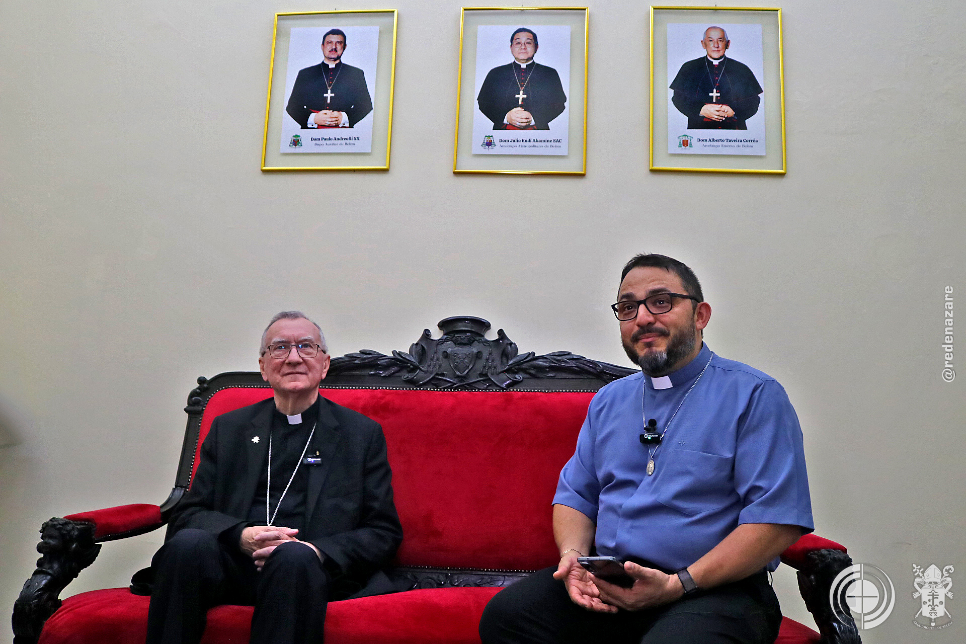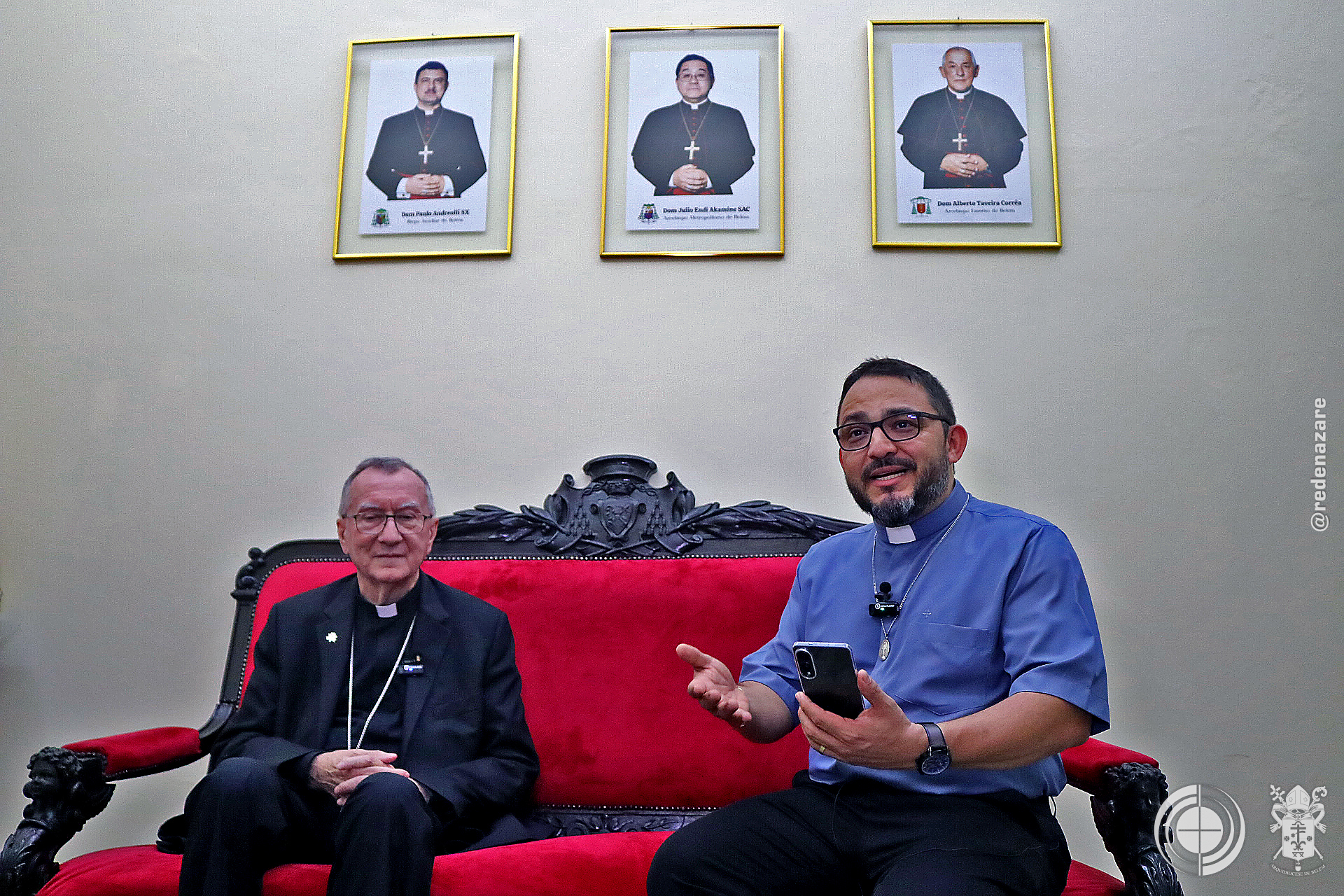 Cardeal Pietro Parolin: E todos os meios de comunicação. E, portanto, o cenário se alarga imensamente, porque o Brasil é um continente, então os telespectadores são muitos. E saúdo vocês muito cordialmente, aqui, da casa do arcebispo de Belém.