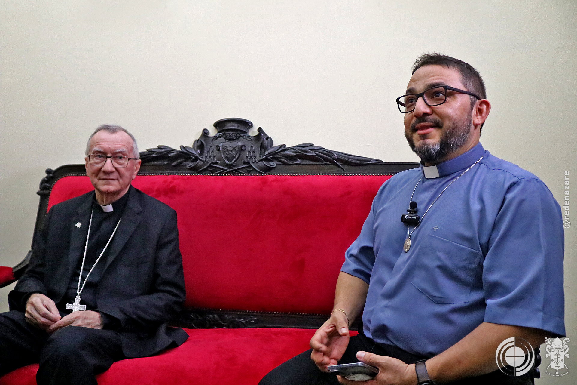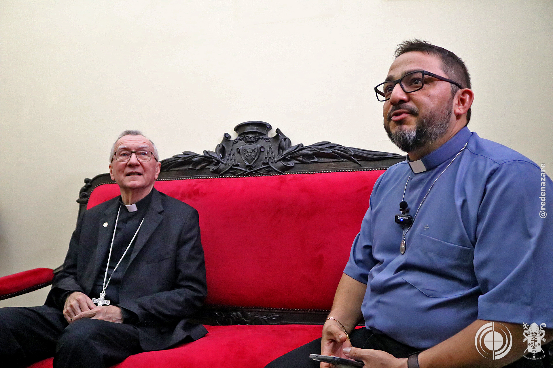 Cardeal Pietro Parolin: Obrigado, obrigado por este convite, por esta oportunidade que me é dada de me dirigir aos telespectadores da televisão Nazaré, me parece que assim se chama…
