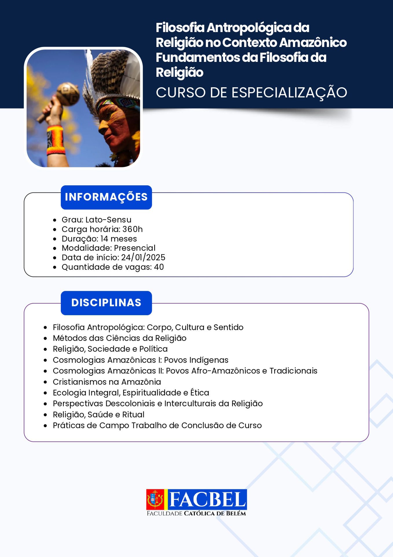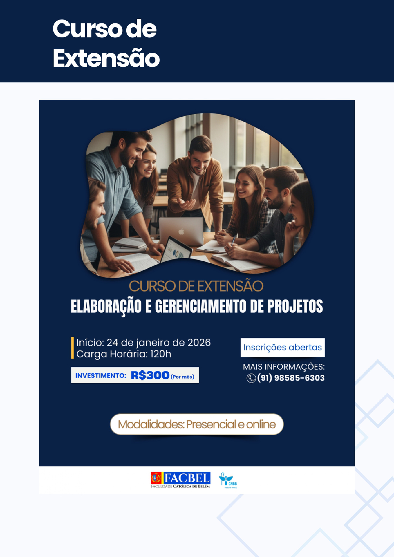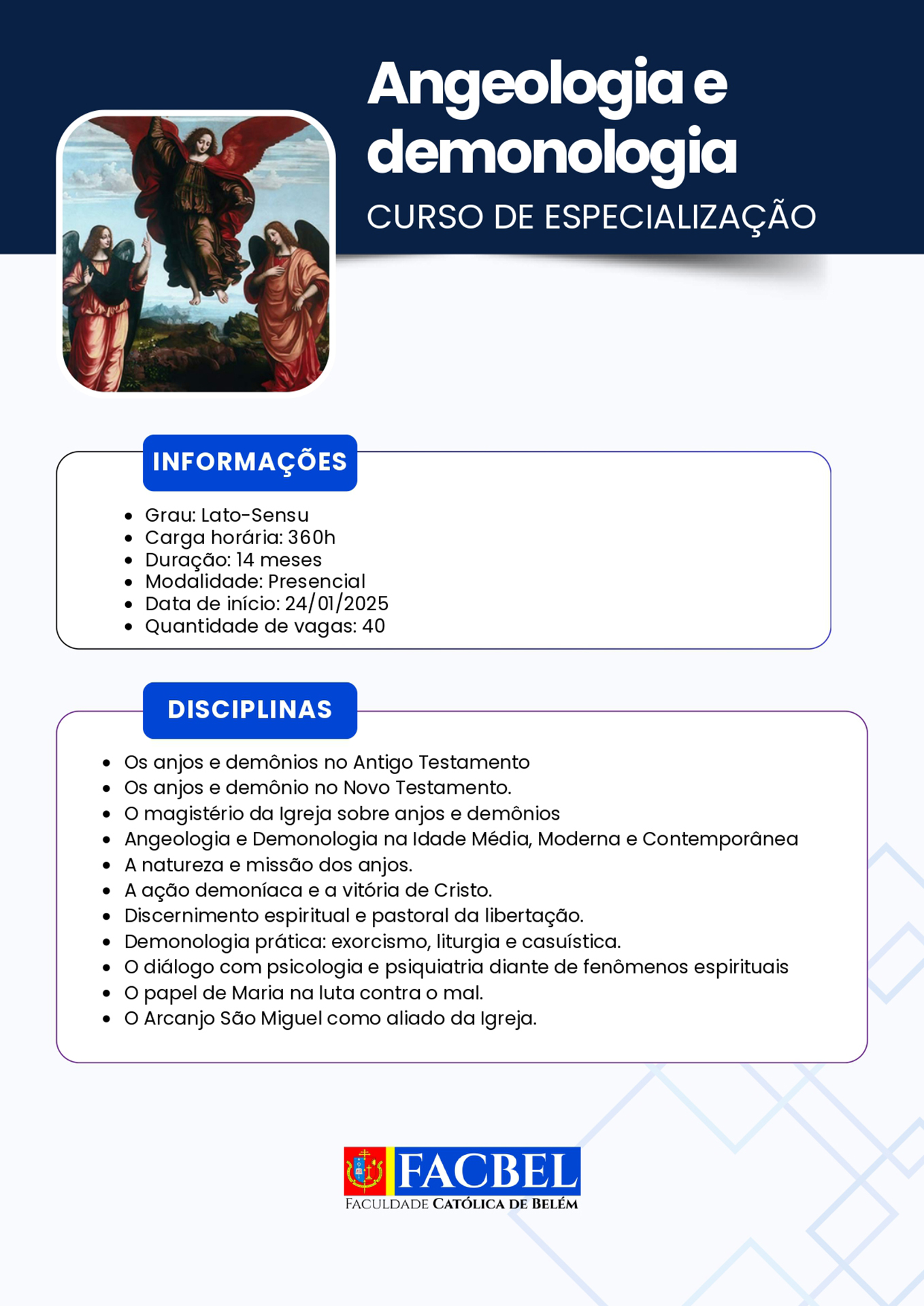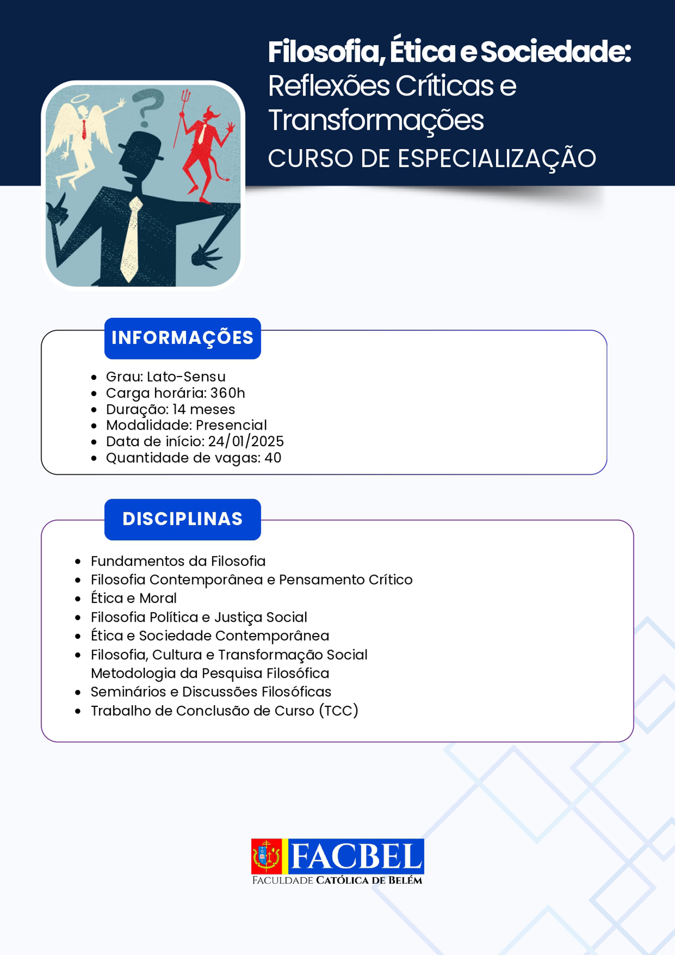A Faculdade Católica de Belém (Facbel) está recomeçando suas atividades referentes ao ano letivo 2026. Uma boa oportunidade para os interessados habilitarem-se ao estudo de diversas opções de aprendizado acadêmico.
