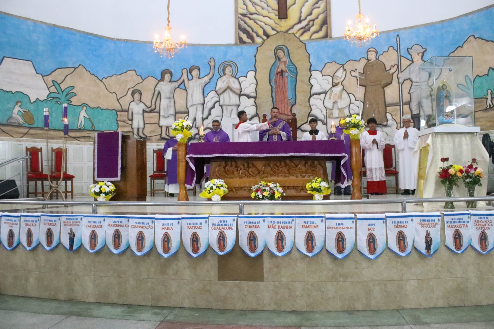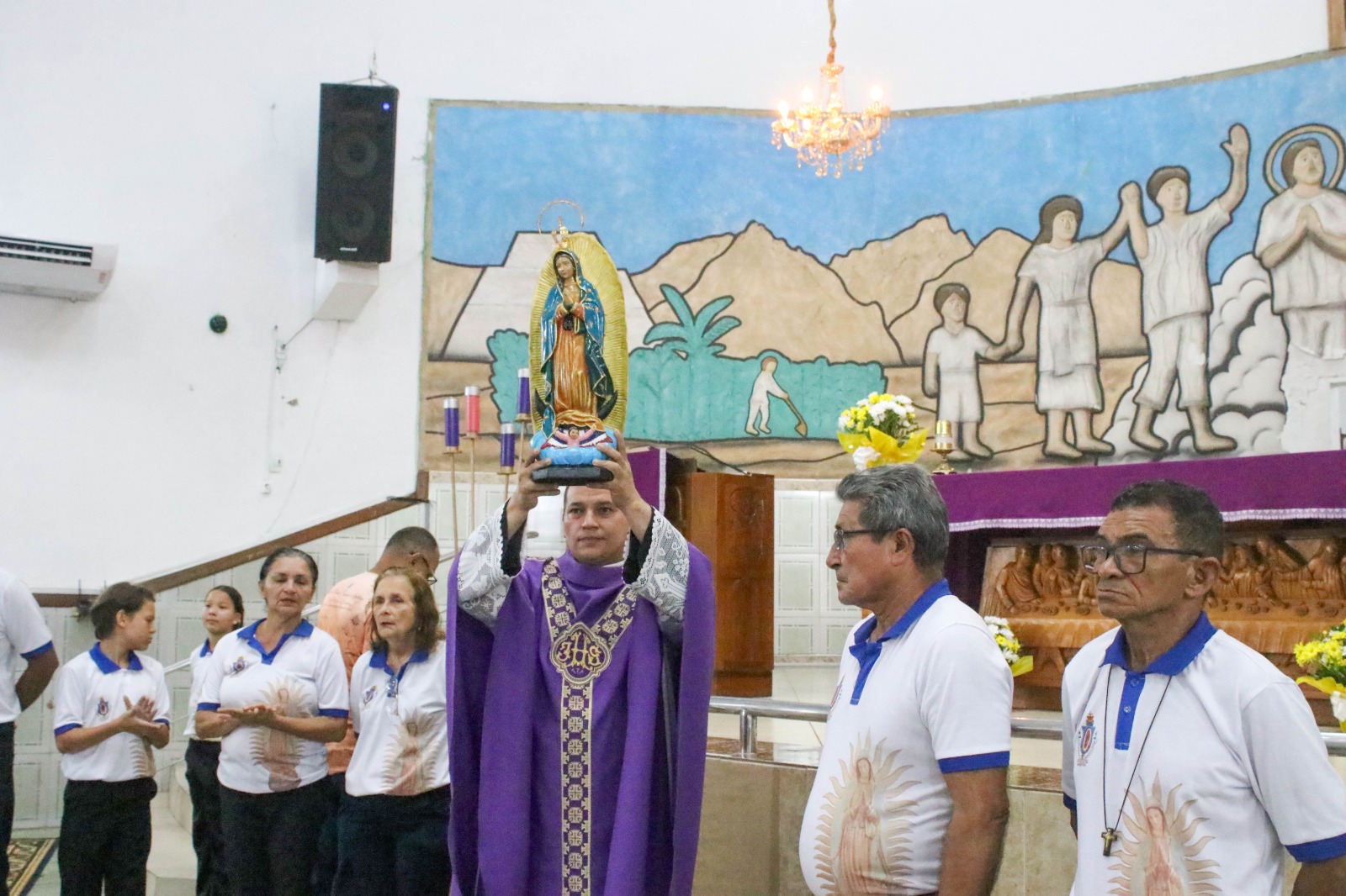 À chegada dos fiéis à Paróquia Nossa Senhora de Guadalupe, destacou-se na procissão de entrada para a Santa Missa de abertura, às 19h, presidida pelo pároco, padre Jael de Jesus. Na ocasião, as representações pastorais, grupos, movimentos e comunidades, mostraram a força viva da evangelização realizada pela paróquia. “Cada serviço, cada pessoa, cada “sim” ao convite a levar adiante a mensagem de Deus, constrói esse caminho de fé. Que Maria de Guadalupe continue nos guiando e intercedendo por cada família da nossa comunidade”, ratificou o pároco, padre Jael.