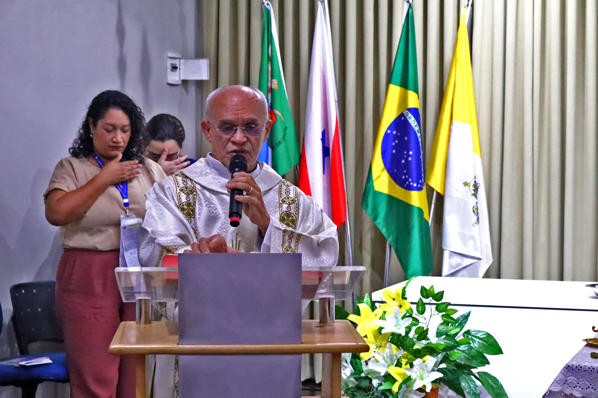A Fundação Nazaré de Comunicação é responsável pela Comunicação Oficial da Arquidiocese de Belém. Por isso, a Missa celebrada às 11h desta sexta-feira, 10 de abril, contou com a participação dos colaboradores e voluntários, acolhidos no auditório da instituição, acolhidos pela Diretora de Comunicação, Elyvane Barbosa, e demais membros da Diretoria Executiva.
