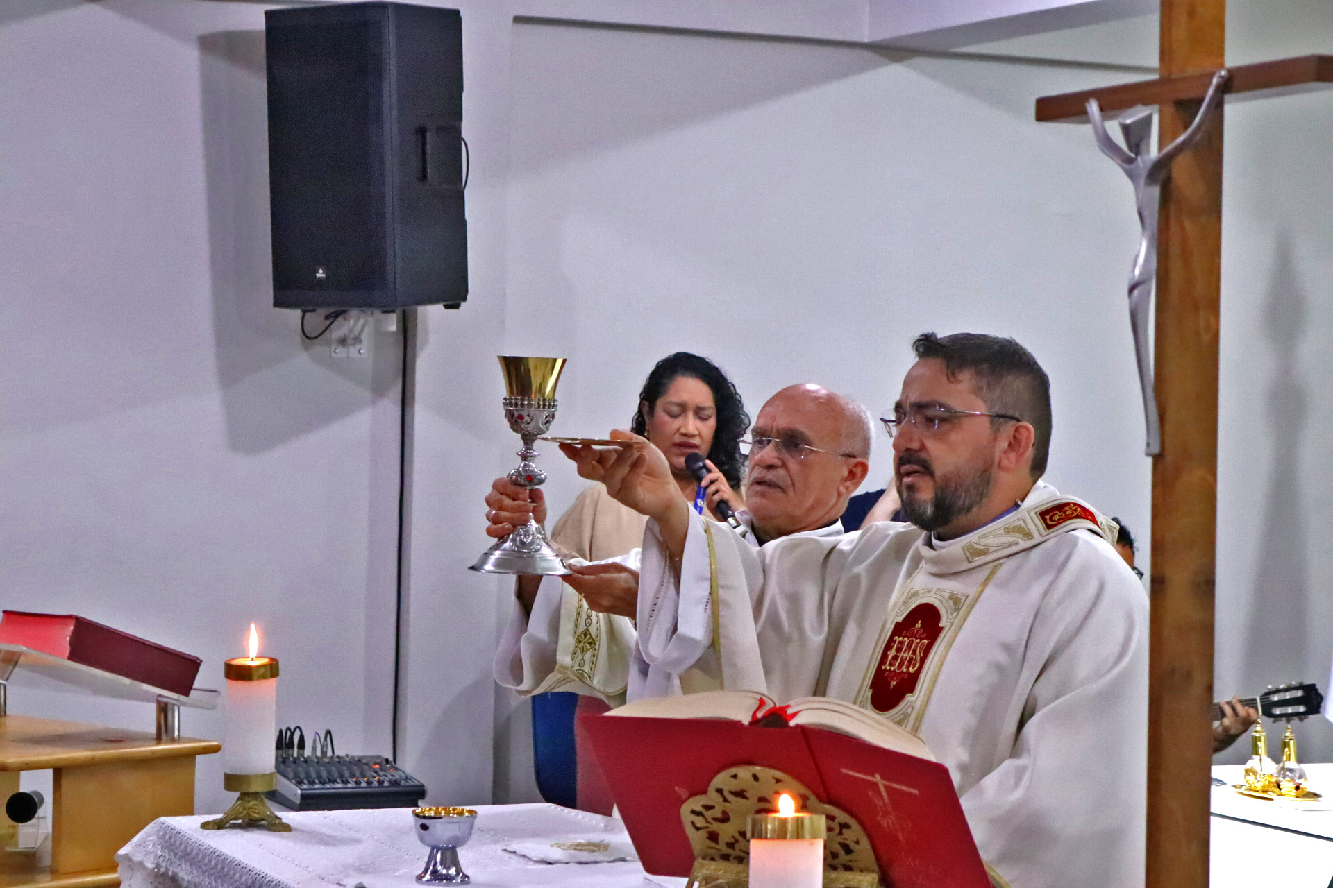 Essas foram as primeiras palavras do padre Wagner Maria, nos ritos iniciais da Santa Missa que celebrou a Páscoa para aqueles que fazem o cotidiano da Fundação Nazaré de Comunicação, onde o sacerdote é o Diretor Geral.