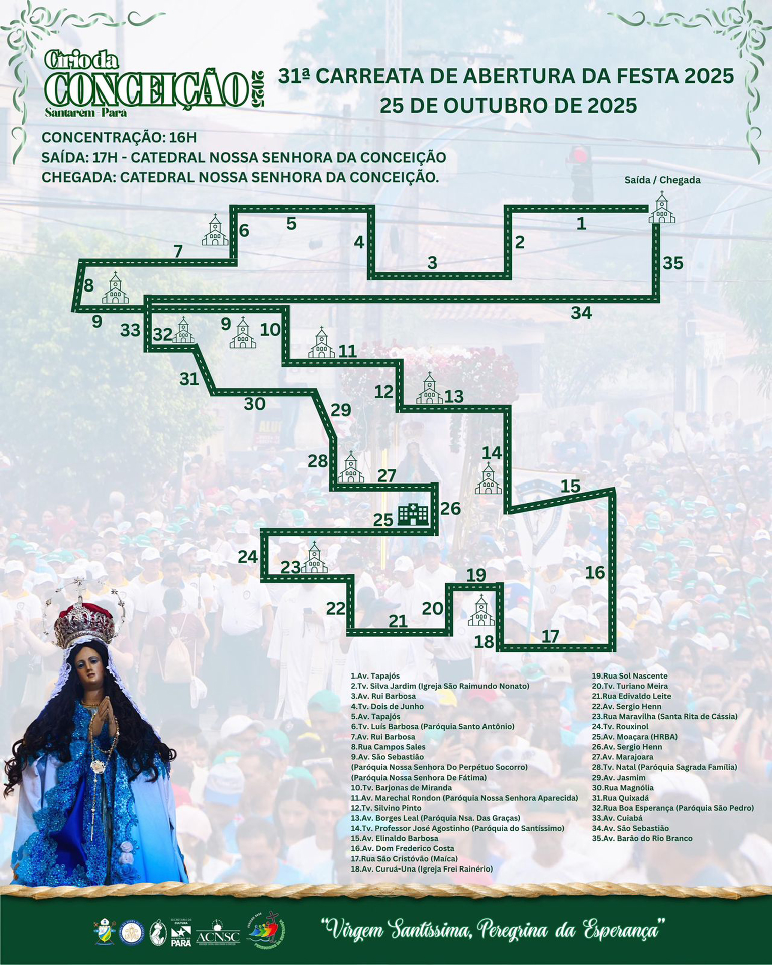 Fonte: Arquidiocese de Santarém / Por: Luiz Nascimento – ASCOM Círio da Conceição 2025 / Informações: Setor 01 de Comunicação da Diretoria da Festa de Nossa Senhora da Conceição