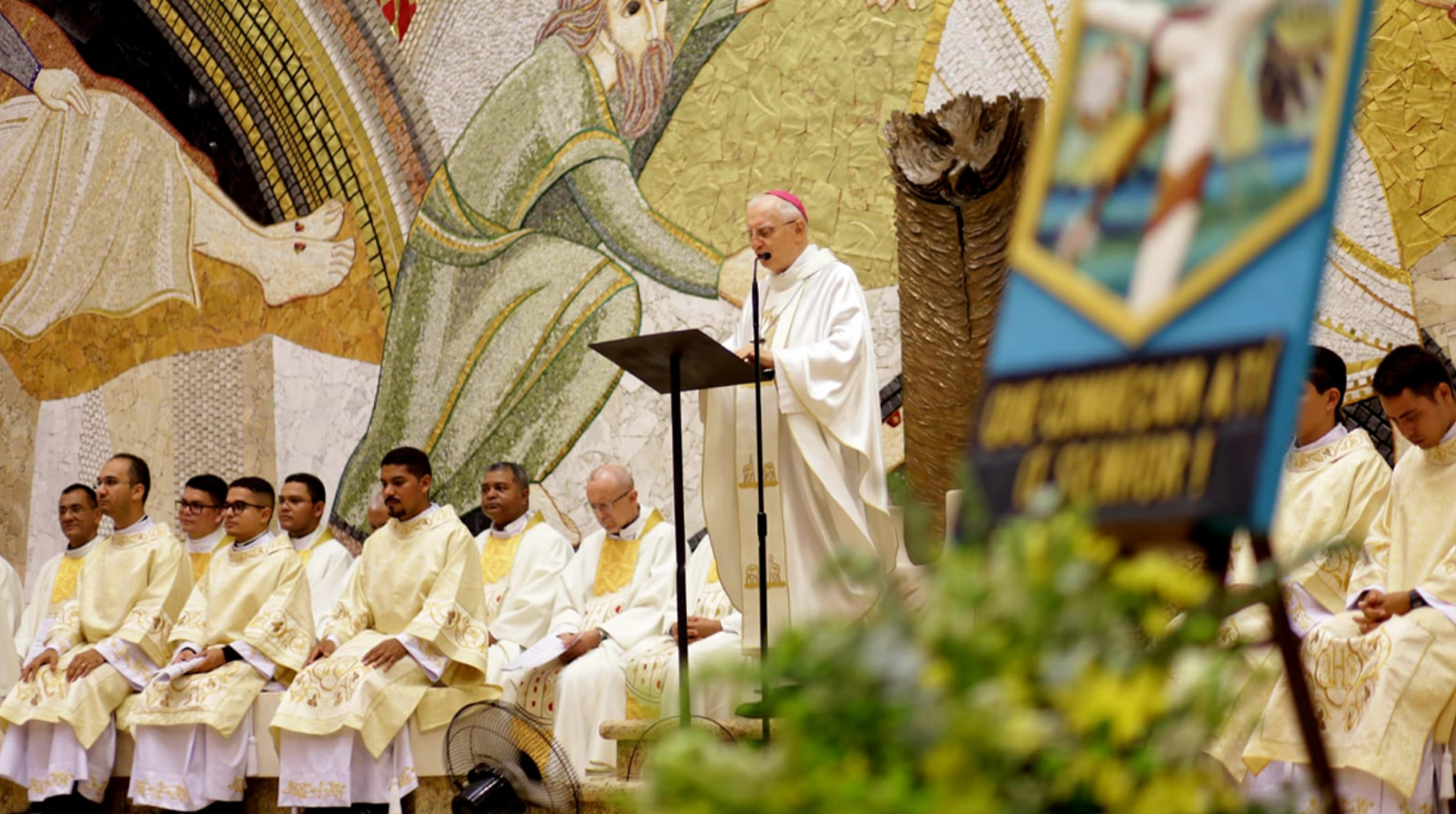Dom Carlos, em sua homilia, exortou os ordenandos a seguirem os passos de Cristo Bom Pastor: “sejam homens do caminho, do serviço, do encontro. Não há espaço para lentidão, indiferença ou procrastinação. Aqueles que encontraram Deus, e carregam sua presença dentro de si, não podem permanecer imóveis; ‘o amor de Cristo nos impele. …