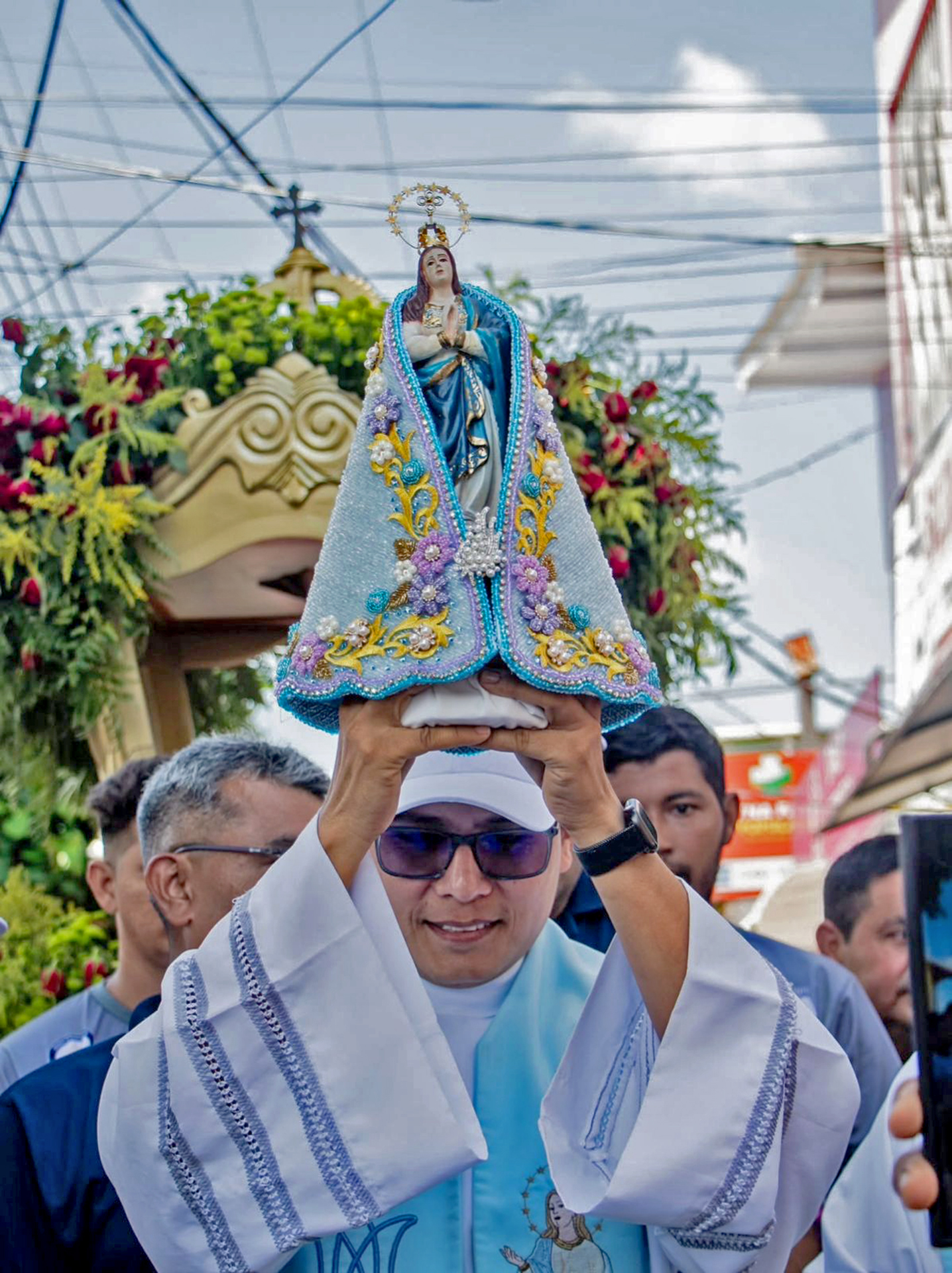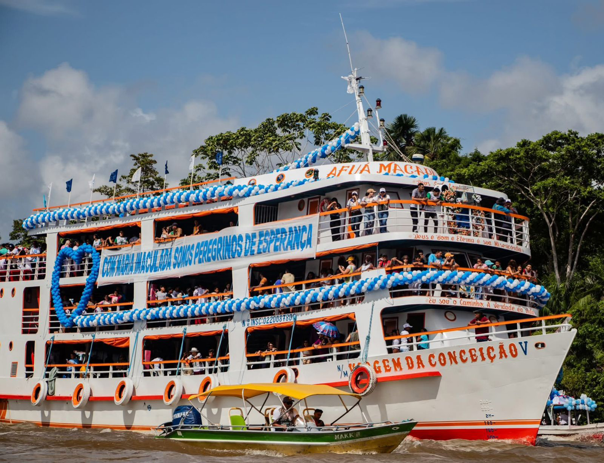 Desde as primeiras horas da manhã, Afuá amanheceu diferente. O toque dos sinos, a ornamentação das ruas, as famílias se preparando, e o fluxo de peregrinos chegando à cidade formavam um cenário que revelava a grandeza daquele momento. Pessoas que moram longe retornaram para casa especialmente para esse encontro com Maria. A cidade se tornou um abraço aberto, acolhendo cada devoto que chegava com o coração cheio de fé.