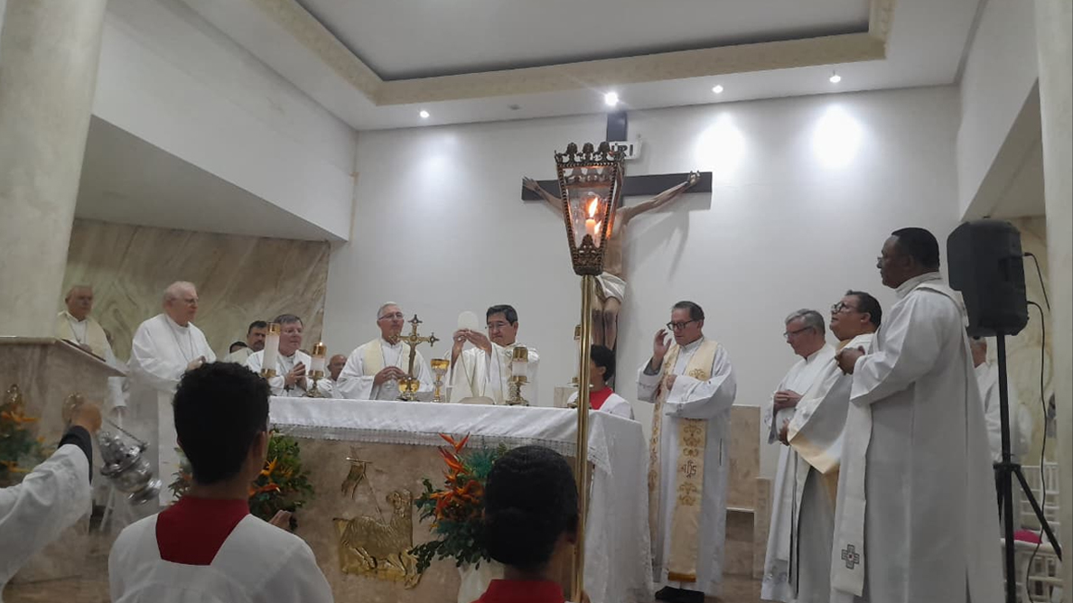 No dia anterior, à noite, uma Celebração Eucarística deu às boas-vindas aos bispos na Catedral de Nossa Senhora do Perpétuo Socorro. Presidida pelo bispo anfitrião, Dom Vital Corbellini, que em sua homilia falou sobre a Fé em movimento na Amazônia e o chamado à ação e ao toque restaurador de Cristo.