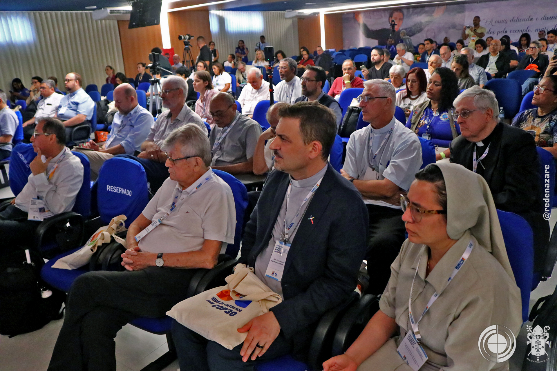 Na abertura do Simpósio foi apresentado um vídeo institucional onde a articulação ‘Igreja Rumo à COP 30’, apresenta uma resposta a um chamado profético da CNBB à conversão e unidade em torno do cuidado com a Casa Comum, que se consolidou como um movimento sinodal envolvendo mais de cem instituições católicas em todo o Brasil, coordenado por diversas comissões episcopais e redes eclesiais. O propósito central, evidenciado no vídeo institucional foi o de garantir uma presença ativa e profética na conferência climática em Belém, traduzindo a fé em ação histórica. Esse processo vivo, que rejeita o colapso ambiental e exige justiça climática, ganhou corpo através das Pré-COPs realizadas nas cinco macrorregiões do país: a Norte, em Belém, focada na escuta amazônica; a Nordeste, em Juazeiro, que fortaleceu a agenda climática popular; a Sul, em Governador Celso Ramos, que debateu falsas soluções; a Leste, em Belo Horizonte, que celebrou a resistência contra o extrativismo; e a Centro-Oeste, em Bonito, que reafirmou a memória dos mártires da terra. O ciclo de mobilização, nutrido pela oração e pela memória dos defensores da vida, culminou no apelo unificado dos conselhos episcopais da África, Ásia, América Latina e Caribe, sinalizando um compromisso global da Igreja com a transformação ecológica.