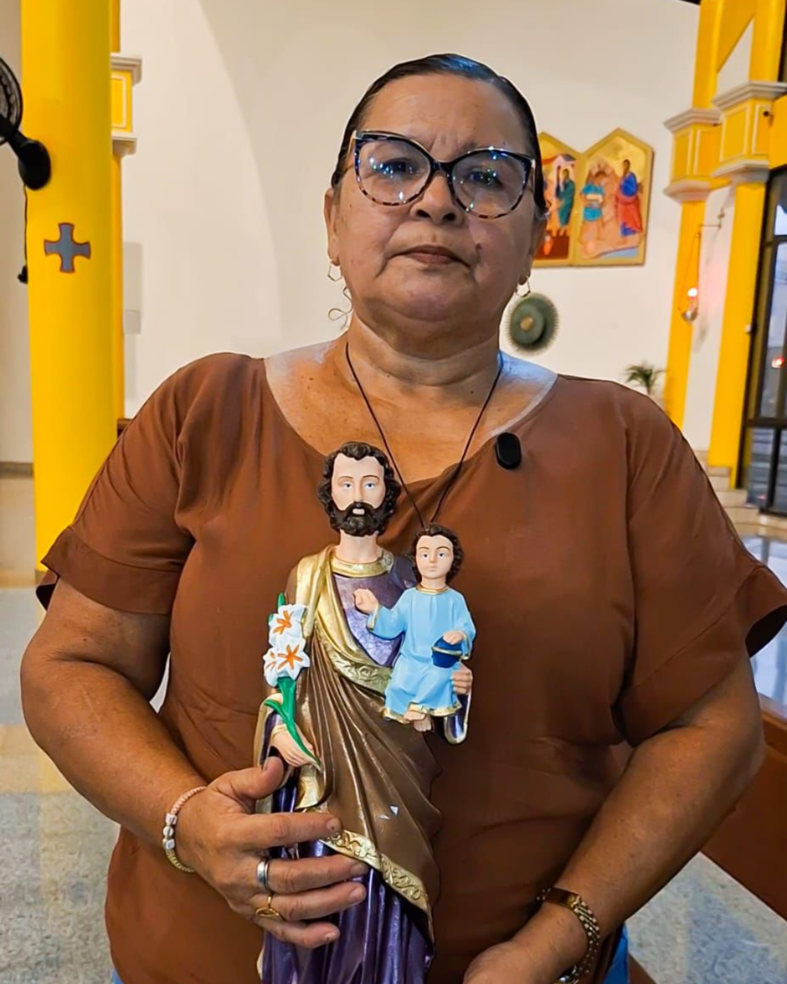 “Minha devoção a São José vem do meu avô. Desde então, nunca deixei de frequentar a igreja e sempre caminhei com São José. Entre as bênçãos que alcancei, pedi muito para que minha filha conseguisse uma casa, e ela conseguiu. Sou muito grata a Deus e a São José”, relatou a devota Francilete Palmeirim.