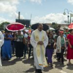 A ladainha de Todos os Santos, cantada pelo ministério de música “Paráclito”, da Paróquia Nossa Senhora do Rosário, Curuçá, ajudou os animadores a seguirem em oração até a Catedral Santa Maria Mãe de Deus, que todos adentraram, passando pela Porta Santa e, em seguida, participaram da Celebração Eucarística presidida por Dom Carlos.