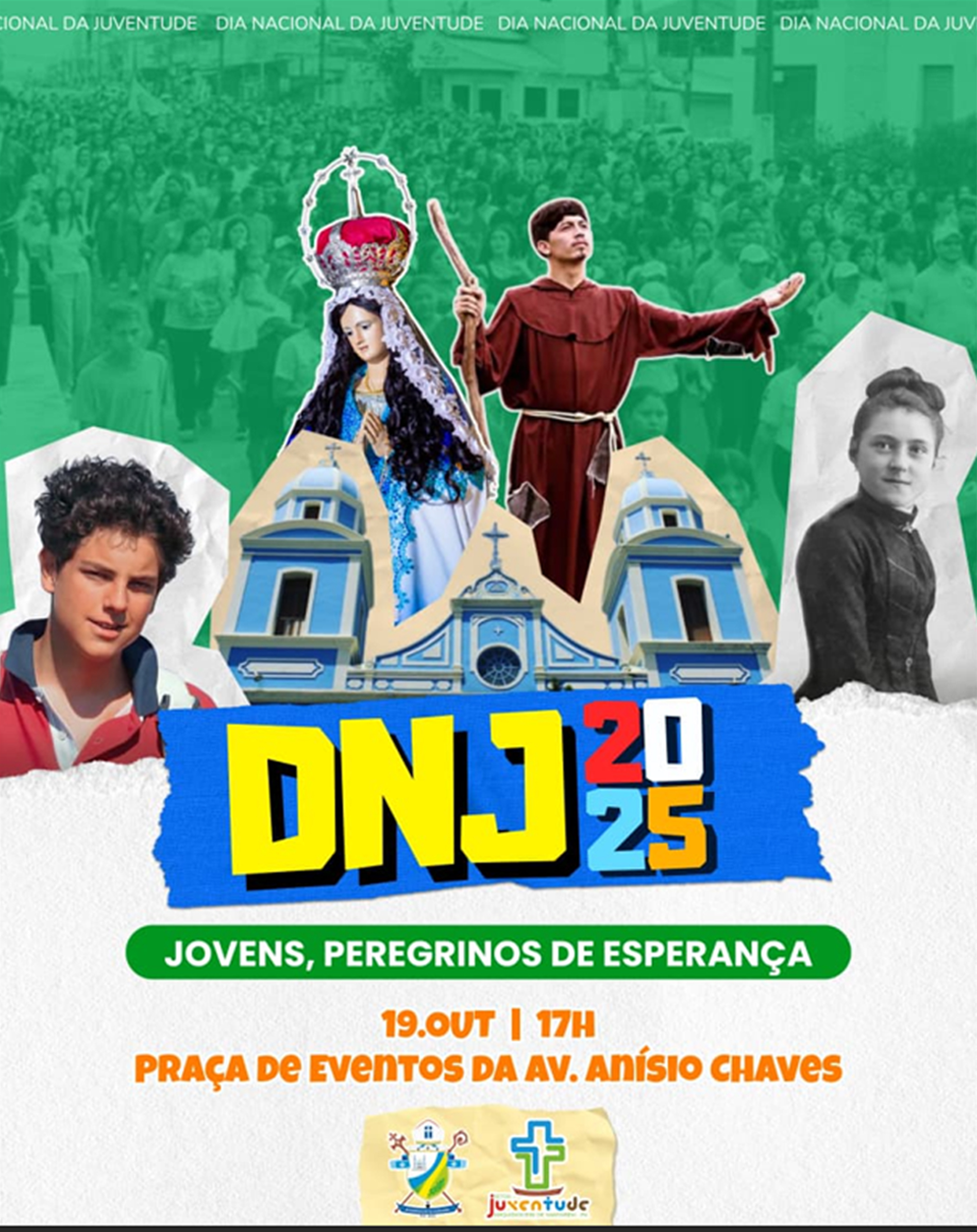 A juventude da Arquidiocese de Santarém se prepara para viver um dos momentos mais esperados do ano: o Dia Nacional da Juventude (DNJ), que neste ano acontece no domingo, 19 de outubro, das 17h às 22h, na Praça de Eventos da Avenida Anísio Chaves. O encontro reunirá jovens das paróquias, áreas pastorais e movimentos da cidade de Santarém em uma grande celebração de fé, alegria e compromisso com a esperança.
