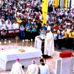 Após este momento, a celebração ocorreu com os ritos previstos pela liturgia solene. Em clima de festa a assembleia acompanhou os cantos tradicionais em honra ao santo padroeiro, as leituras previstas para o dia com destaque à relação paternal de José, as preces pelos povo amapaense feitas durante a Oração da Assembleia e a Liturgia Eucarística.