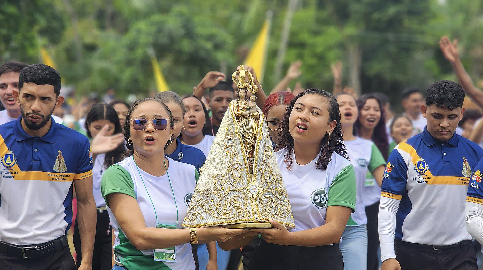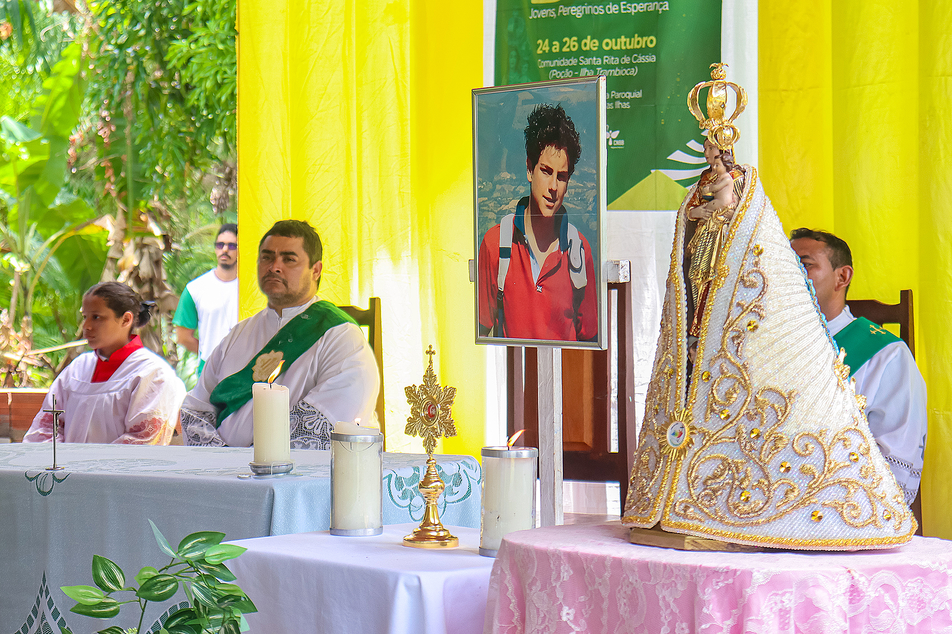 No domingo (26), os jovens acolheram com grande emoção a Imagem de Nossa Senhora de Nazaré, trazida pela MotoCarreata da Ilha Trambioca, e participaram da Santa Missa de encerramento, presidida por nosso pároco, PadreIdaltino dos Prazeres, concelebrada pelo PadreNadson Araújo e com o auxílio litúrgico dos diáconos Paulo Henrique e Genilson Assunção.
